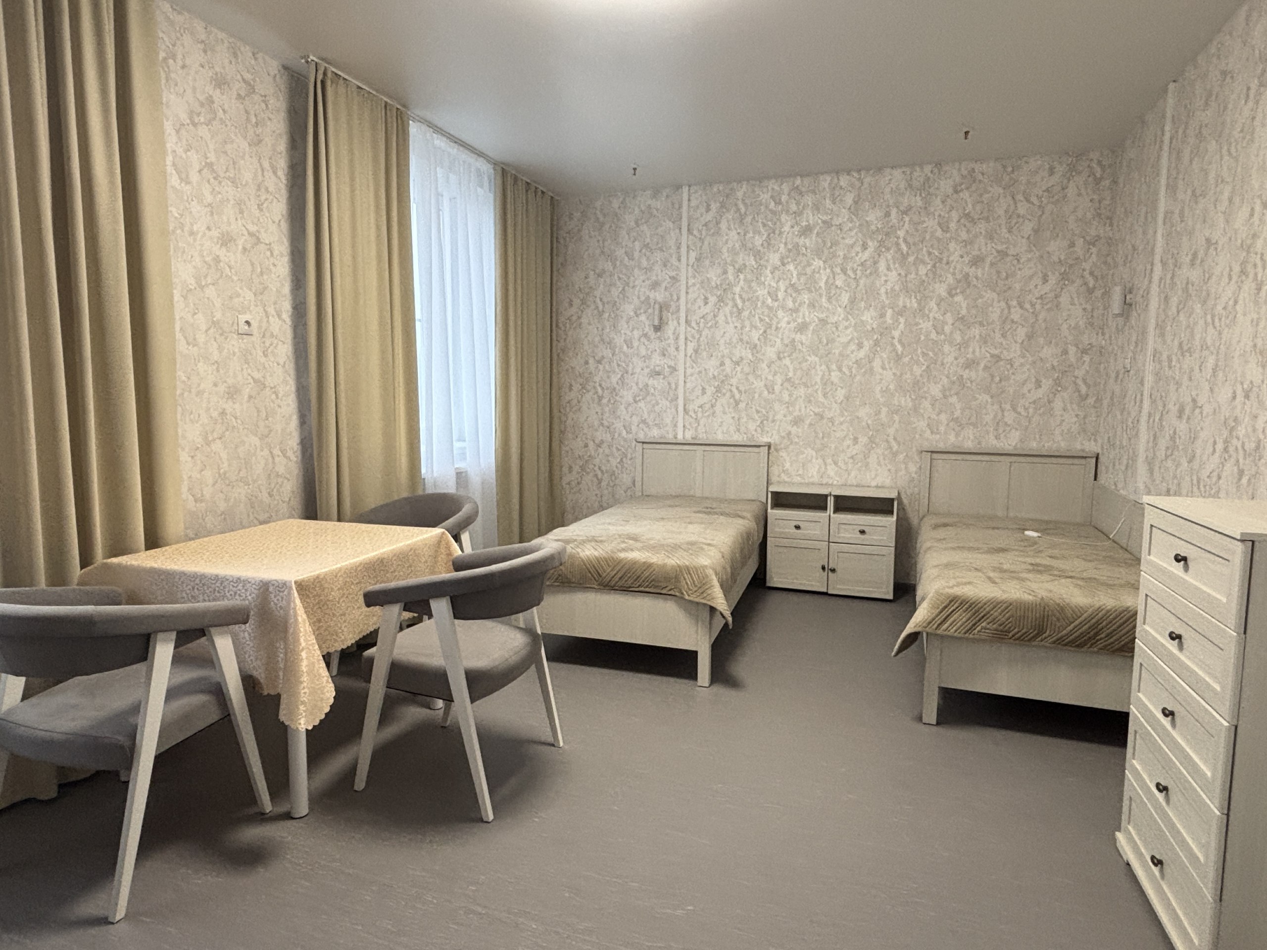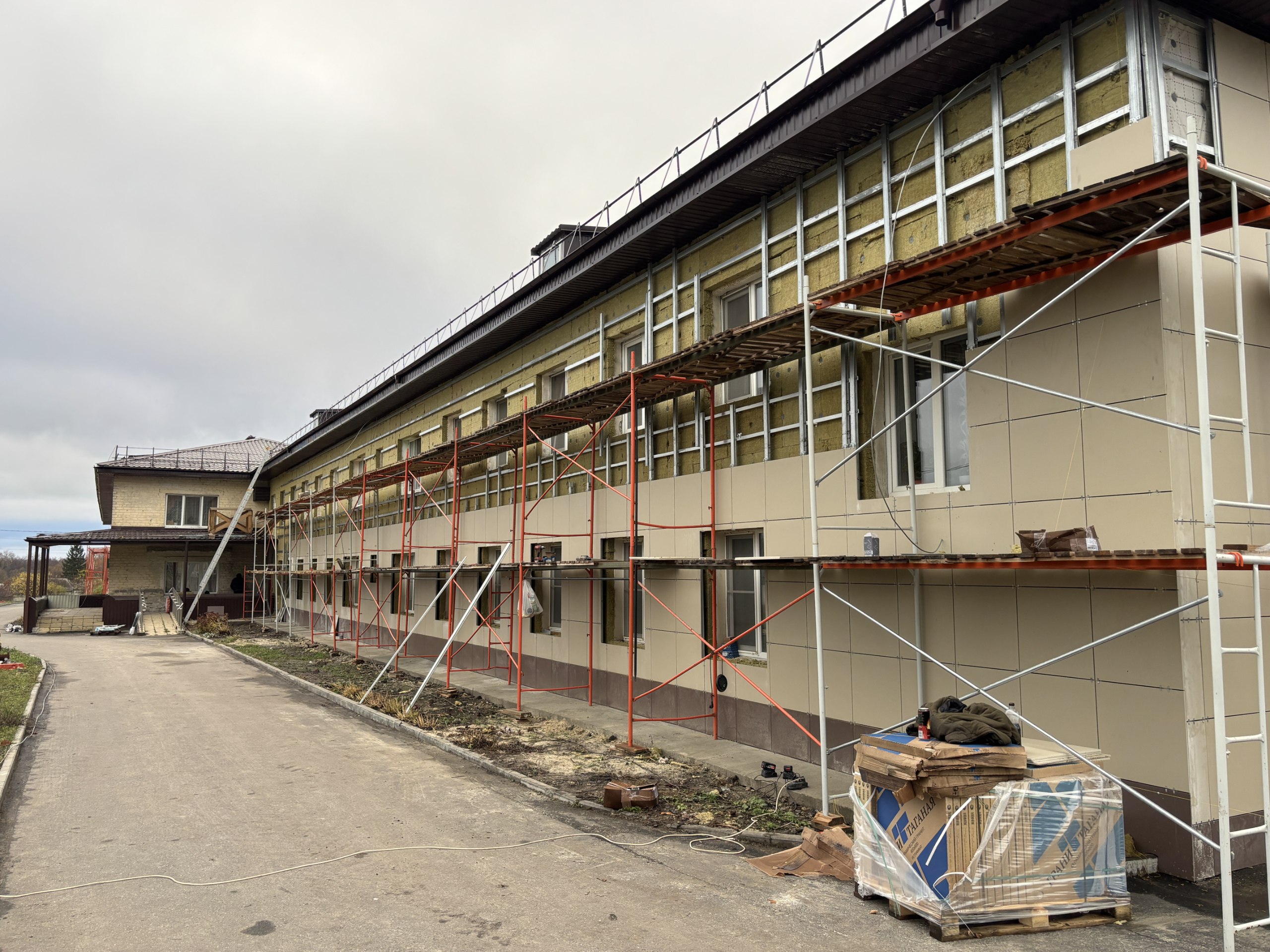 В Курском доме социального обслуживания в ходе капремонта был полностью отремонтирован жилой корпус для маломобильных граждан, обновлены кровли и фасады, заменены инженерные системы. После модернизации здесь открылись новые отделения, в том числе для инвалидов боевых действий — участников СВО. На сегодняшний день в учреждении проживает 152 человека, 84 из них — эвакуированные с приграничных территорий.