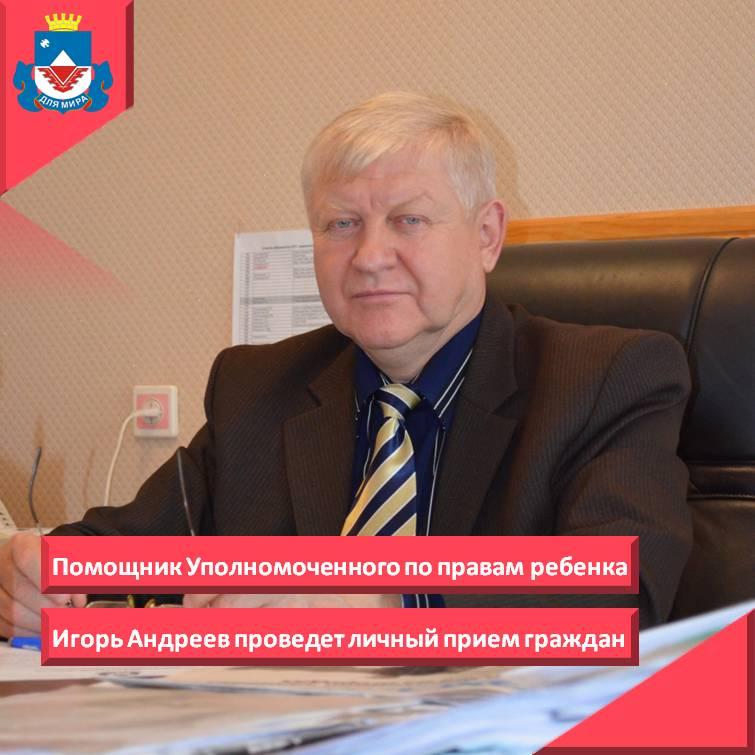 20 ноября с 11.00 до 12.00 часов в отделе опеки и попечительства УСЗОЗН города Железногорска (ул. Ленина, д. 52, кабинет 117) состоится личный прием граждан помощником Уполномоченного по правам ребенка в Курской области Игорем Николаевичем Андреевым. Предварительная запись осуществляется по телефону: 8(47148) 7-64-37.