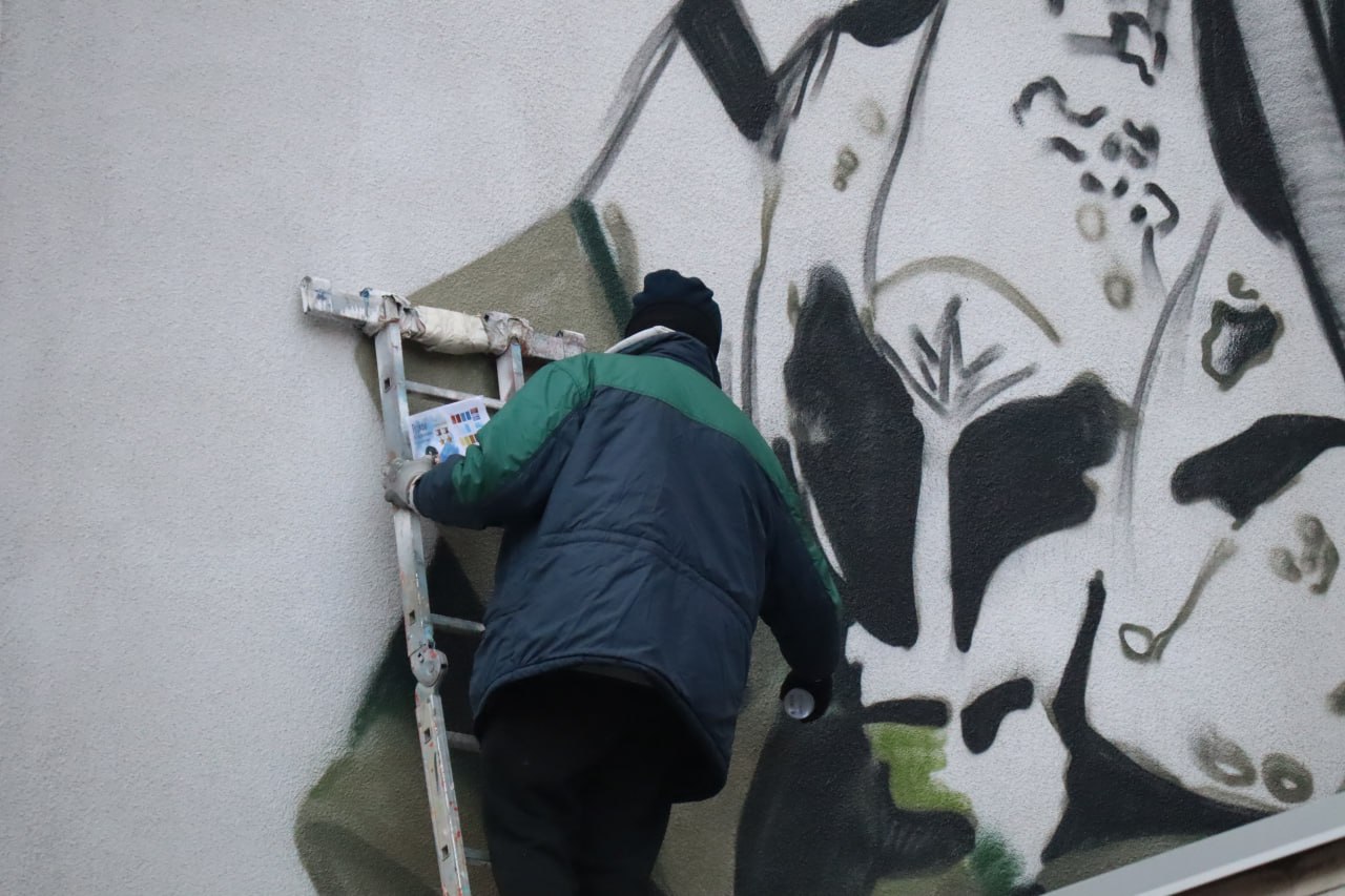 Участие в создании мурала принимают курские и белгородские художники. На стену уже нанесен эскиз, начались работы по нанесению краски. Это не первая историко-патриотическая работа группы художников в Курске. Ранее они создали мурал в парке Дзержинского, посвящённый рыльскому мореплавателю Шелехову, граффити на стене воинской части на улице Красной Армии, на ограждении ж/д вокзала и другие.
