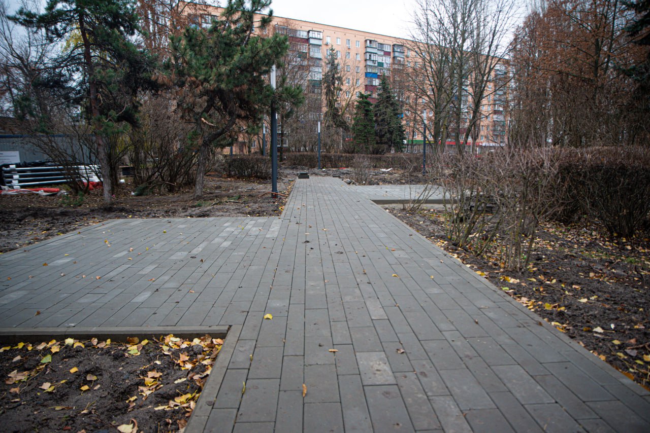 Подрядчик в данный момент занимается укладкой дорожек из тротуарной плитки и завершает монтаж освещения.