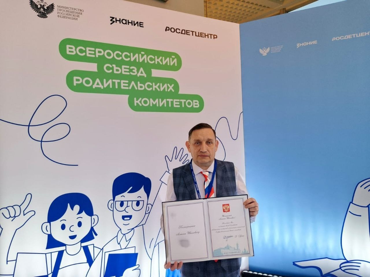 На съезде председателю родительского комитета Возовской школы Поныровского района Алексею Полторацких вручили благодарственное письмо от Президента России Владимира Путина, а ведомственную награду от министра просвещения РФ Сергея Кравцова получила Елена Винникова, советник по воспитанию школы №58 города Курска.