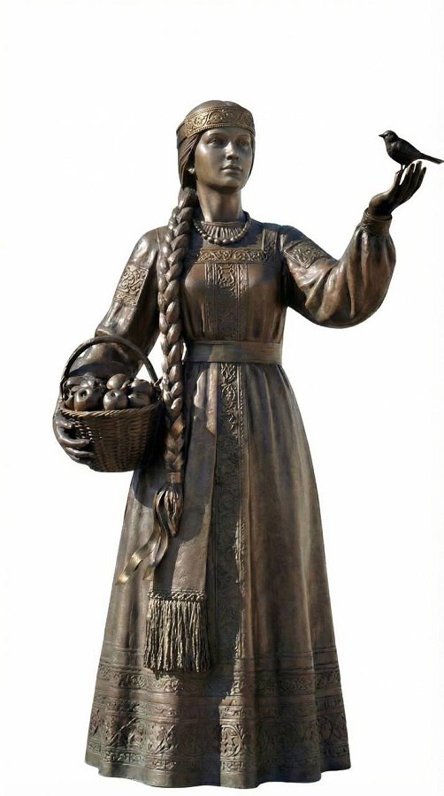 Окончательный вариант скульптуры «Куряночка», которую установят перед одноименным торговым центром на улице Дзержинского, представил губернатор Александр Хинштейн. На голову девушки, которую выбрало большинство проголосовавших курян, надели ленту. В одной руке она держит корзину с курской антоновкой, а в другой — соловья. Это символы Курского края.