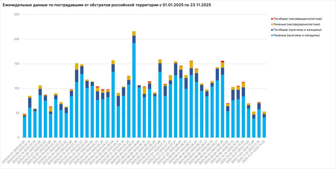 несовершеннолетних, погибли 7 человек. Всего же по гражданским объектам на российской территории за прошедшие семь дней украинские вооруженные формирования выпустили не менее 3135 боеприпасов.