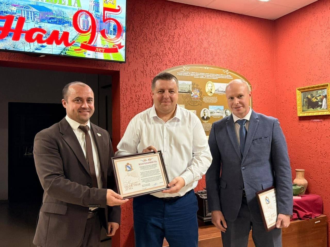«Обоянской газете» в этом году исполнилось 95 лет. Депутаты Курской областной думы Петр Чепурин и Анатолий Зуй побывали у коллектива газеты в гостях и поздравили с юбилейной датой.