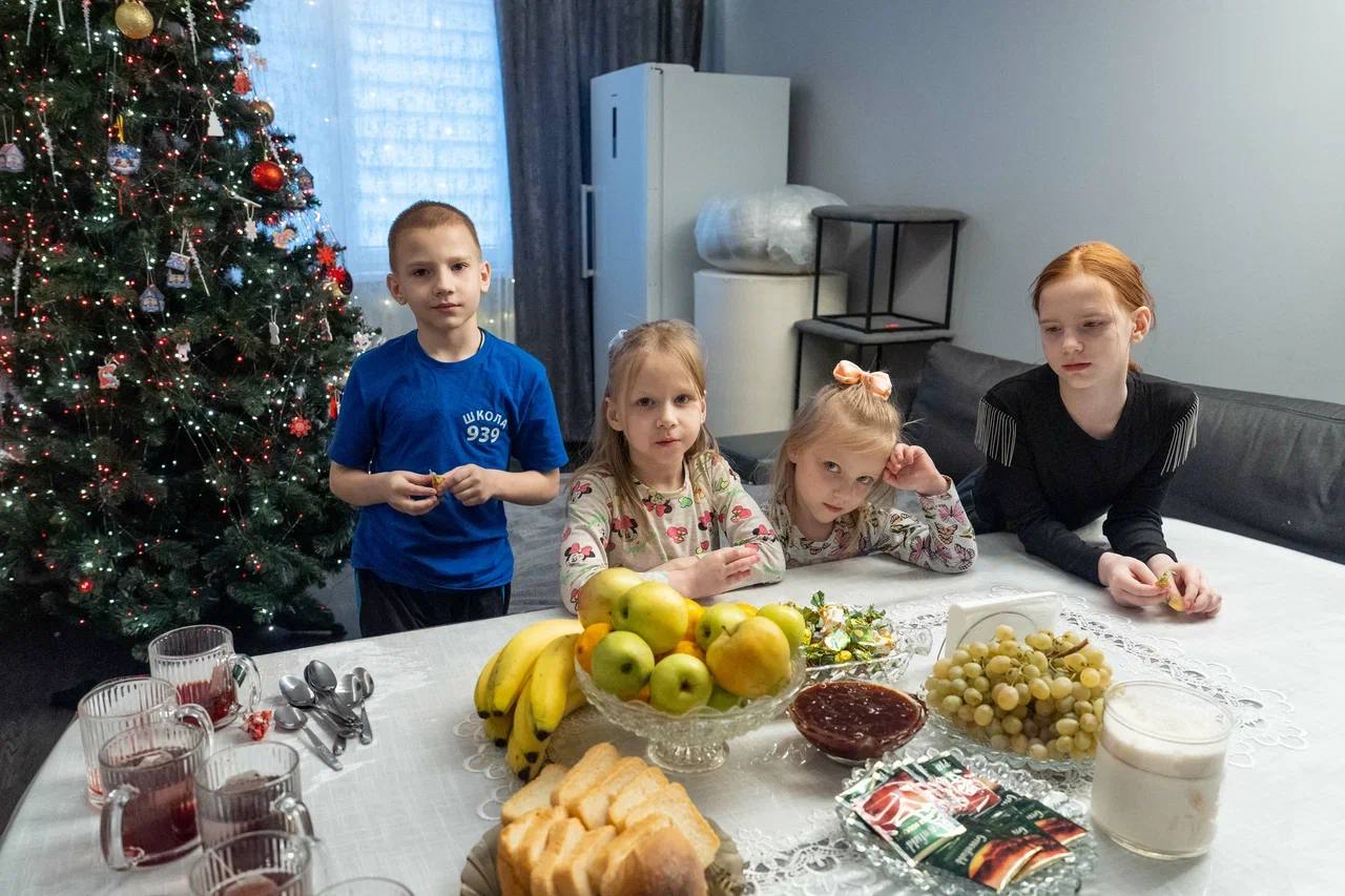 Приехали к Бахаревым в их новую квартиру с подарком от партии — сушильной машиной. Хозяйка Виктория встретила нас как родных: «А голубцы будете?» — и сразу к столу позвала, чай пить. Пока мы общались, все десять ребятишек вышли познакомиться — скромные, воспитанные, аккуратно причесанные, с ясными глазами.