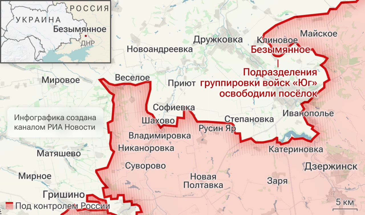 ВС России освободили населенный пункт Безымянное в ДНР, сообщило Минобороны.