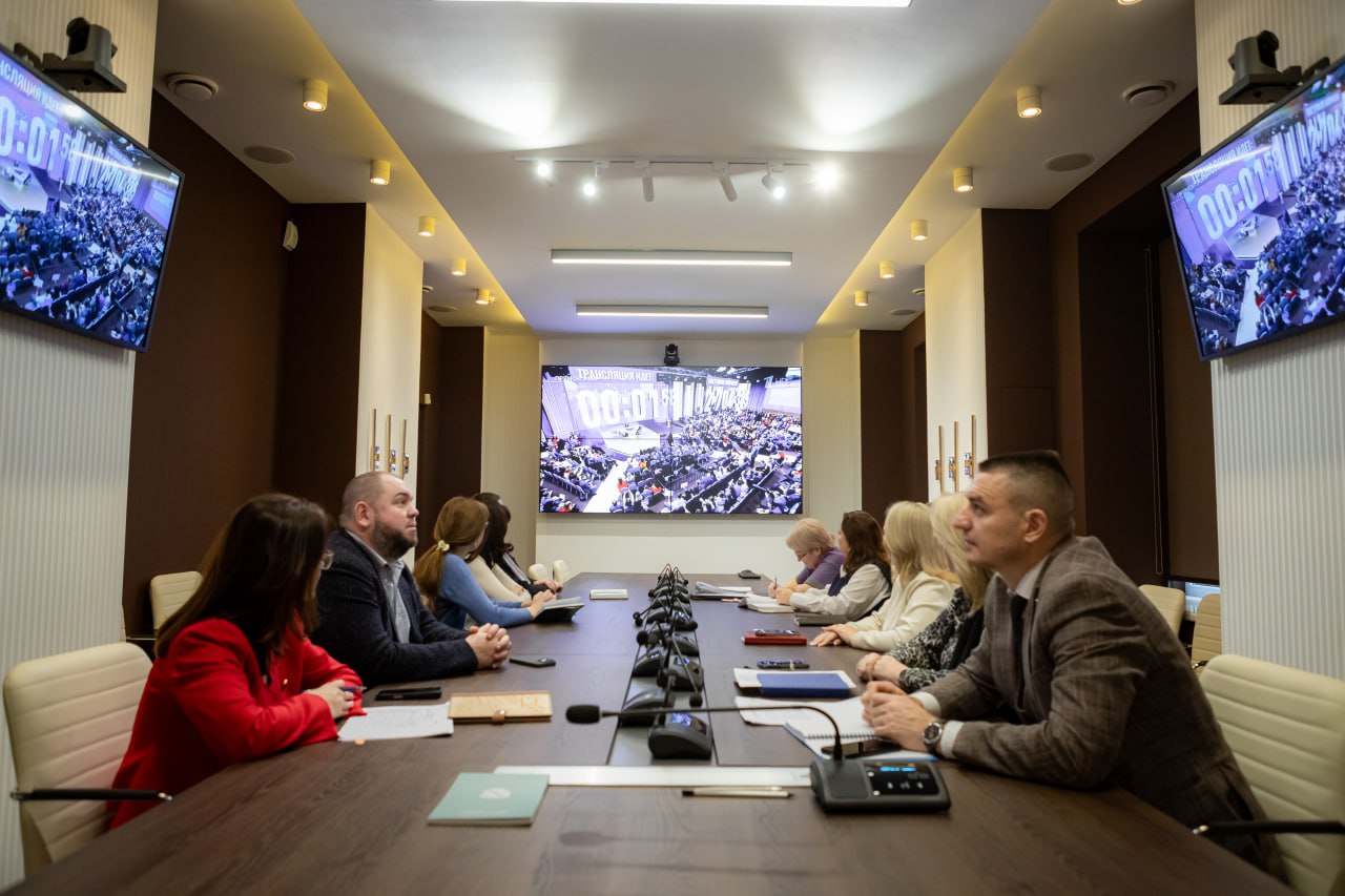 Также в администрации города Курска работает одна из площадок, где коллеги смотрят прямую трансляцию Президента РФ Владимира Путина.