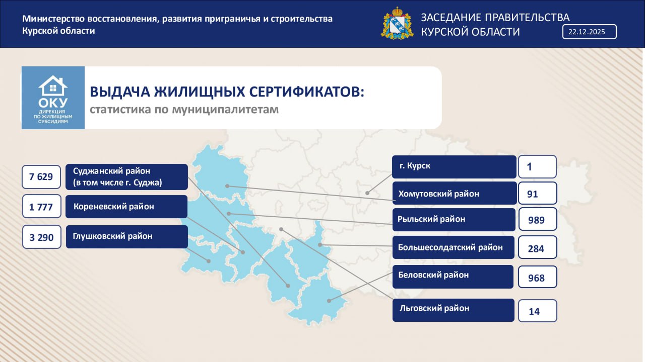 В Курской области выдано 15 039 жилищных сертификатов
