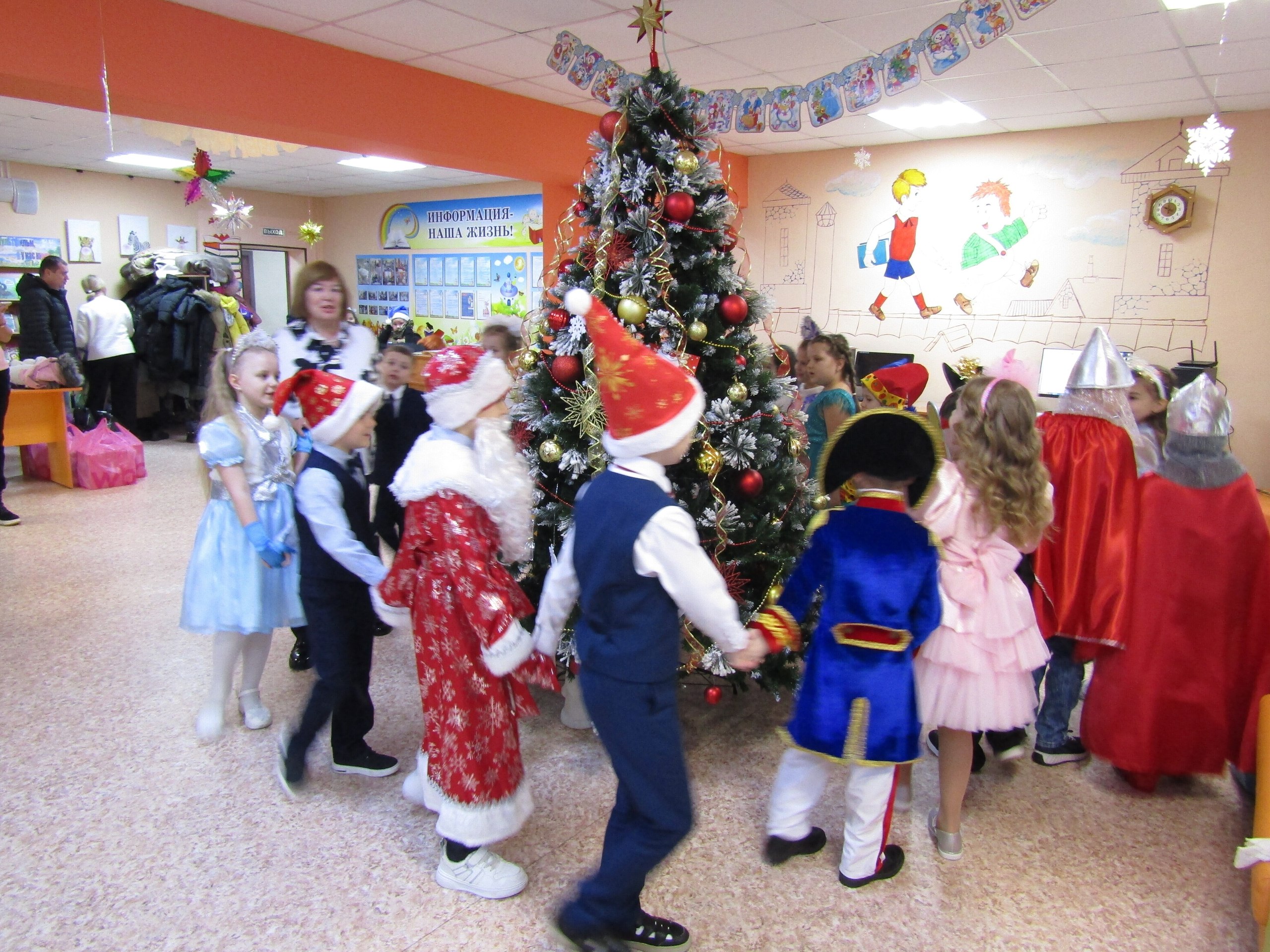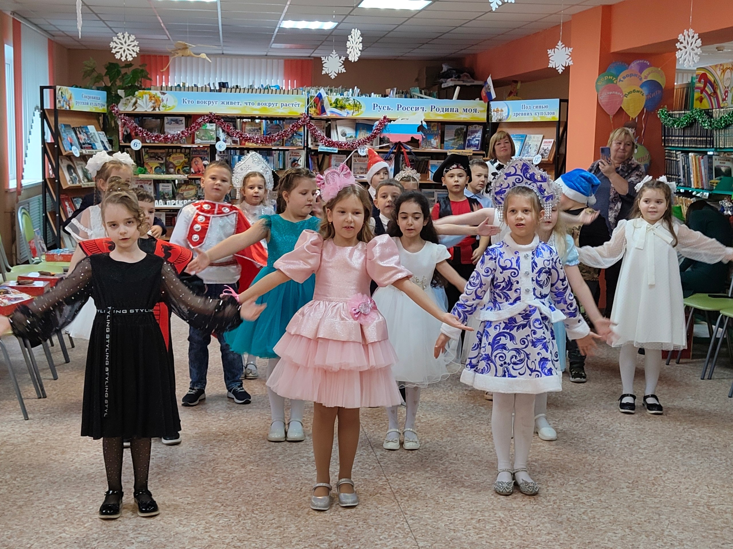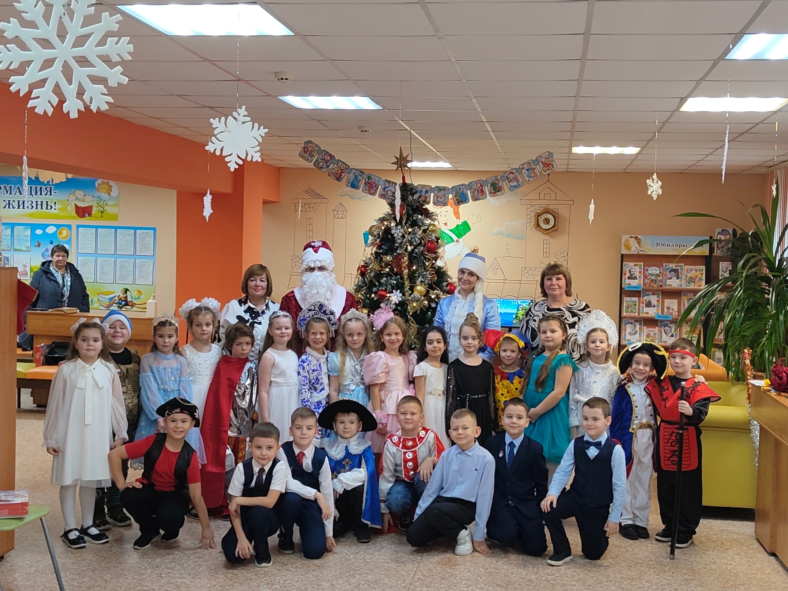 Традиционно, накануне Нового года, сотрудники библиотеки провели интересное, увлекательные мероприятия — новогодний утренник «Новый год стучится – чудо приключится». На празднике присутствовали обучающиеся 1 «В» класса Ленинской СОШ (кл. руководитель Веселова Ольга Дмитриевна). Ребята активно и с большим удовольствием, вместе с Дедом Морозом, Снегурочкой, принимали участие в разнообразных играх и конкурсах, водили хороводы вокруг нарядной елки и веселились от души. Дети подготовили к празднику новогодние стихи, которые рассказали Деду Морозу, и получили подарки. Счастливые лица детей радовали на протяжении всего праздника.