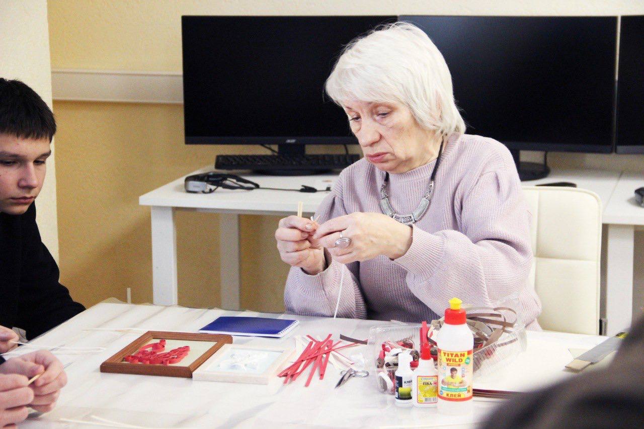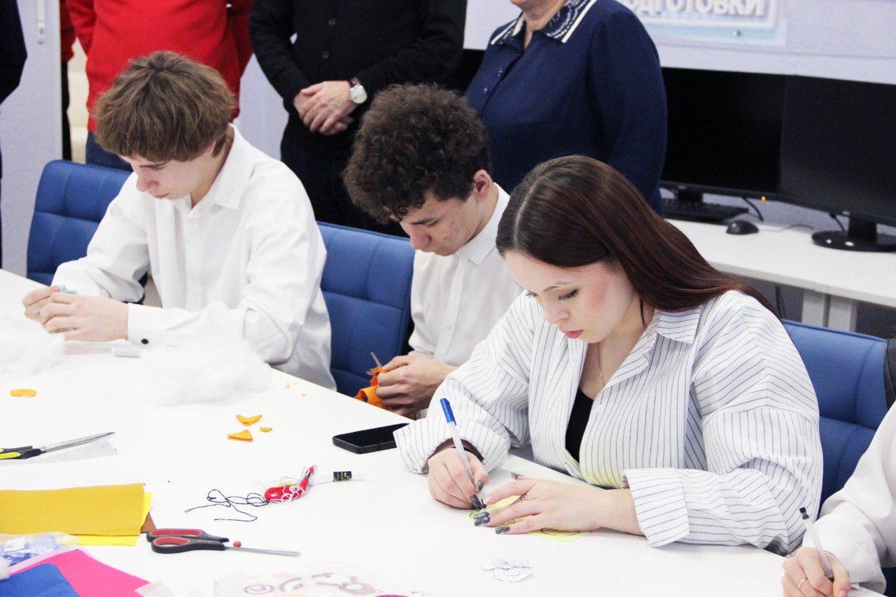 Студенты изготовили талисманы в виде мишек и познакомились с новой техникой работы с бумагой – квиллинг. Этот необычный мастер-класс для них провела волонтёр Ольга Малеева. Женщина часто принимает участие в проектах партии, а также всесторонне помогает фронту – собирает и передаёт гумпомощь, изготавливает вещи для военных, плетёт масксети. В рамках партийного «Новая школа» единороссы показали студентам фильм «Крепость».