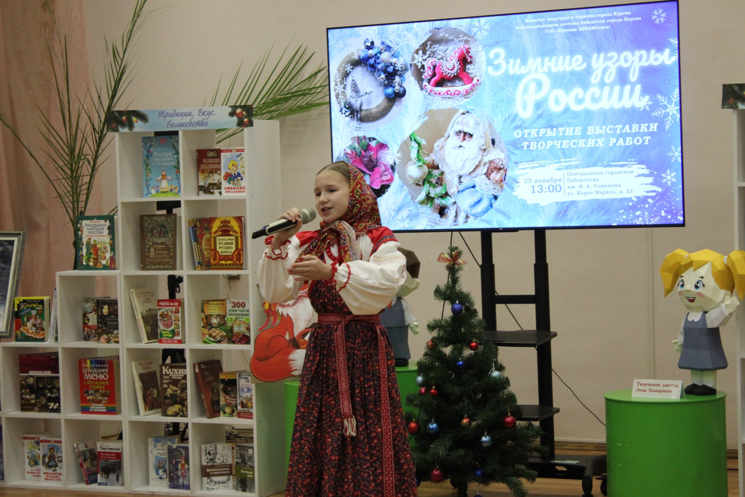 Выставка творческих работ «Зимние узоры России» в рамках литературно-эстетического проекта «Библиогалерея» открылась в Центральной городскойбиблиотеке имени Ф. А. Семенова.