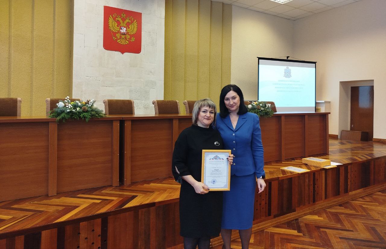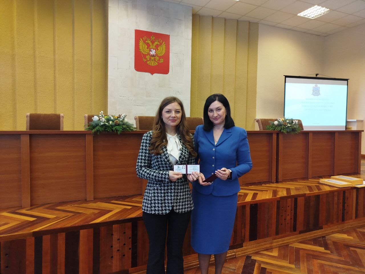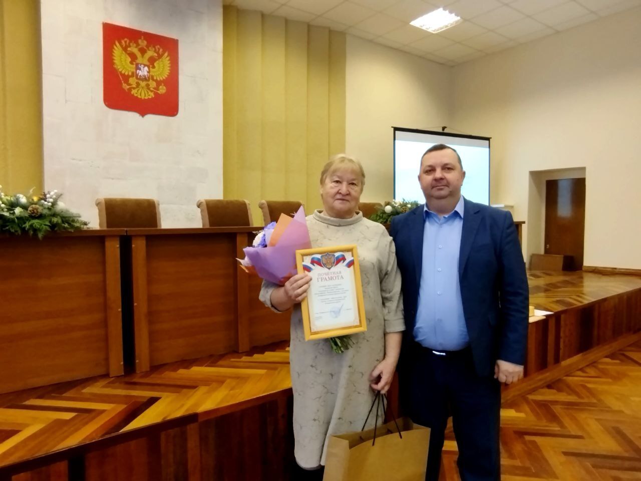 Глава Дмитриевского района Курской области Сергей Ливенцев, Председатель ТИК Наталья Булеева, вручили заслуженные награды организаторам выборов.