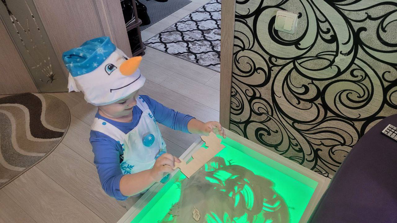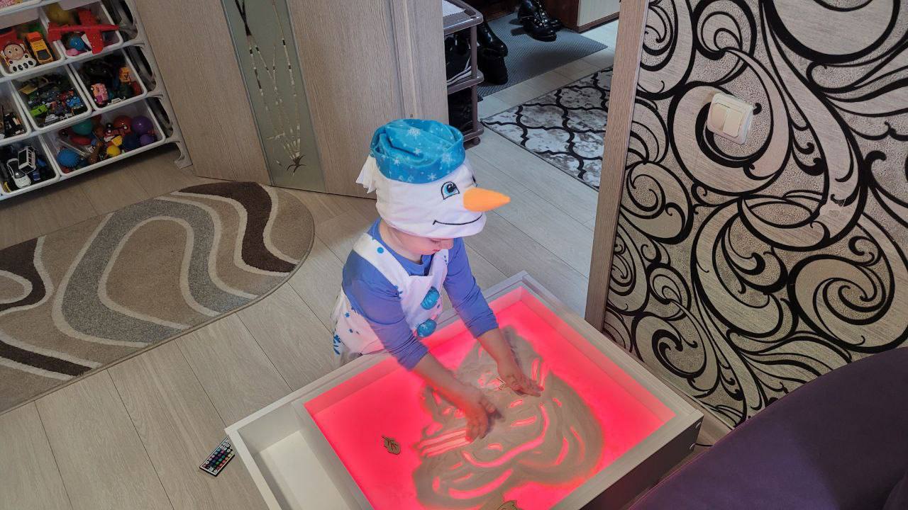 Он исполнил мечту трёхлетнего Саши, именно его шарик с пожеланием снял с «Елки желаний» Сергей Владимирович и подарил ему специальный стол для рисования песком с подсветкой, который очень понравился Саше.