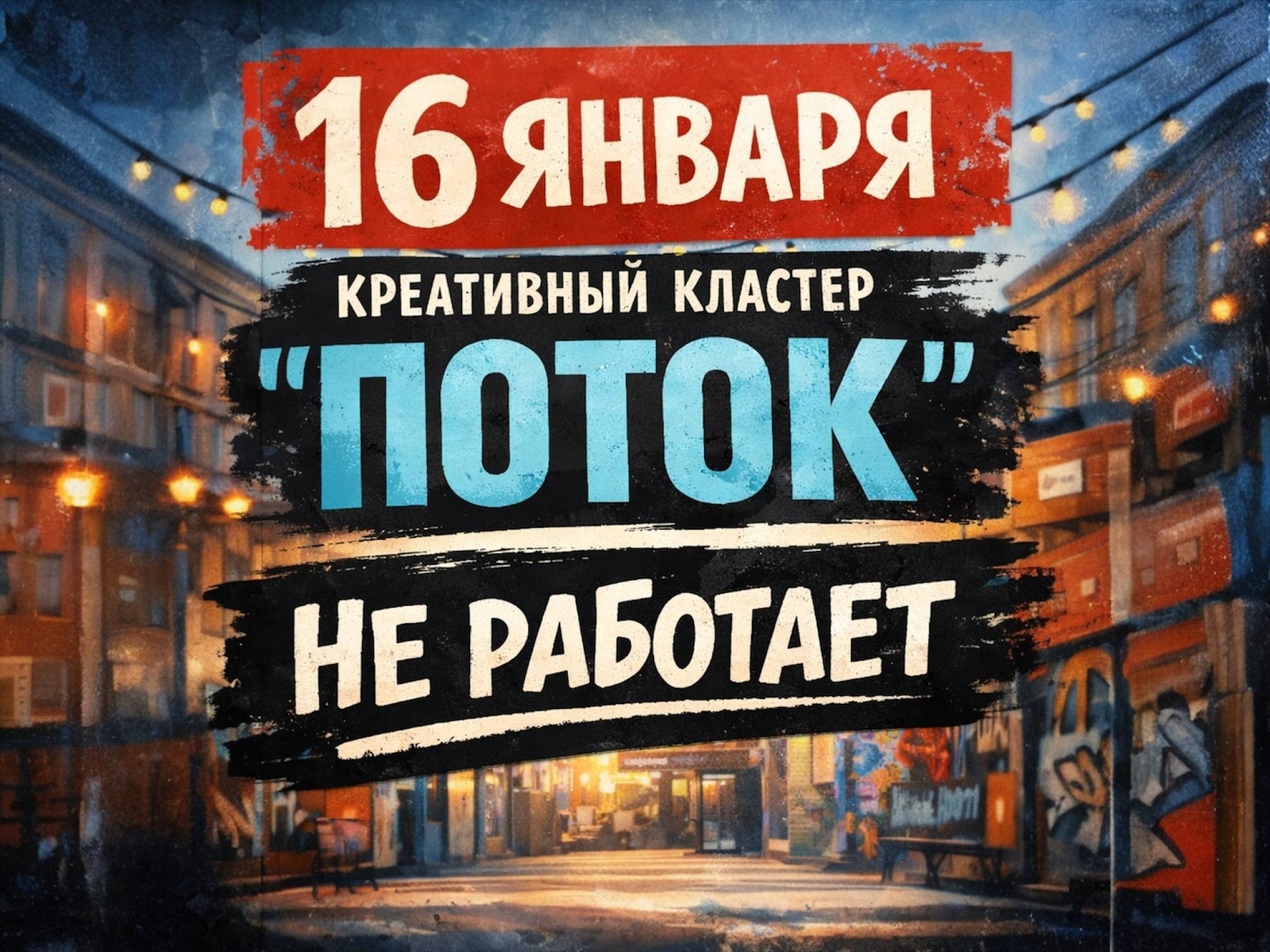 Обращаем Ваше внимание, что 16 января креативный кластер «Поток» не будет работать в связи с проведением мероприятия.