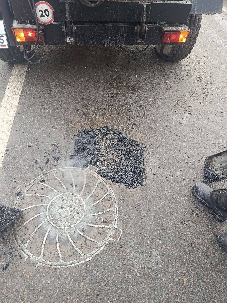 В центре Курска восстановили поврежденную около люка дорогу