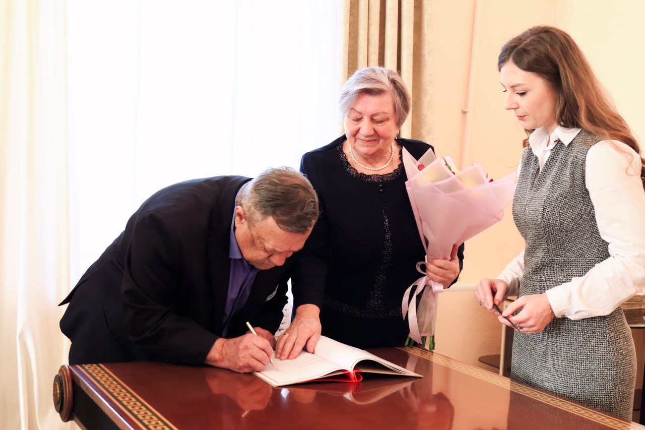 Вчера, после личного приема граждан в Дмитриевском районе и обсуждения с Главой района работы районного отдела ЗАГС, состоялось очень душевное торжество. Совместно с Сергеем Ливенцевым, его заместителем Натальей Булеевой и отделом ЗАГС мы поздравили юбиляров супружеской жизни — семьи, чей совместный путь длиной в полвека и более стал для нас живым примером верности, терпения и мудрости.На лицах этих людей время нарисовало морщины, но взгляды у них попрежнему полны тепла и нежности — именно такие взгляды говорят громче всяких слов о том, что значит любить и быть рядом долгие годы. В этот день мы чествовали две семьи, которые на деле доказали: семейное счастье — это не случайность, а труд, забота и ежедневный выбор друг друга.