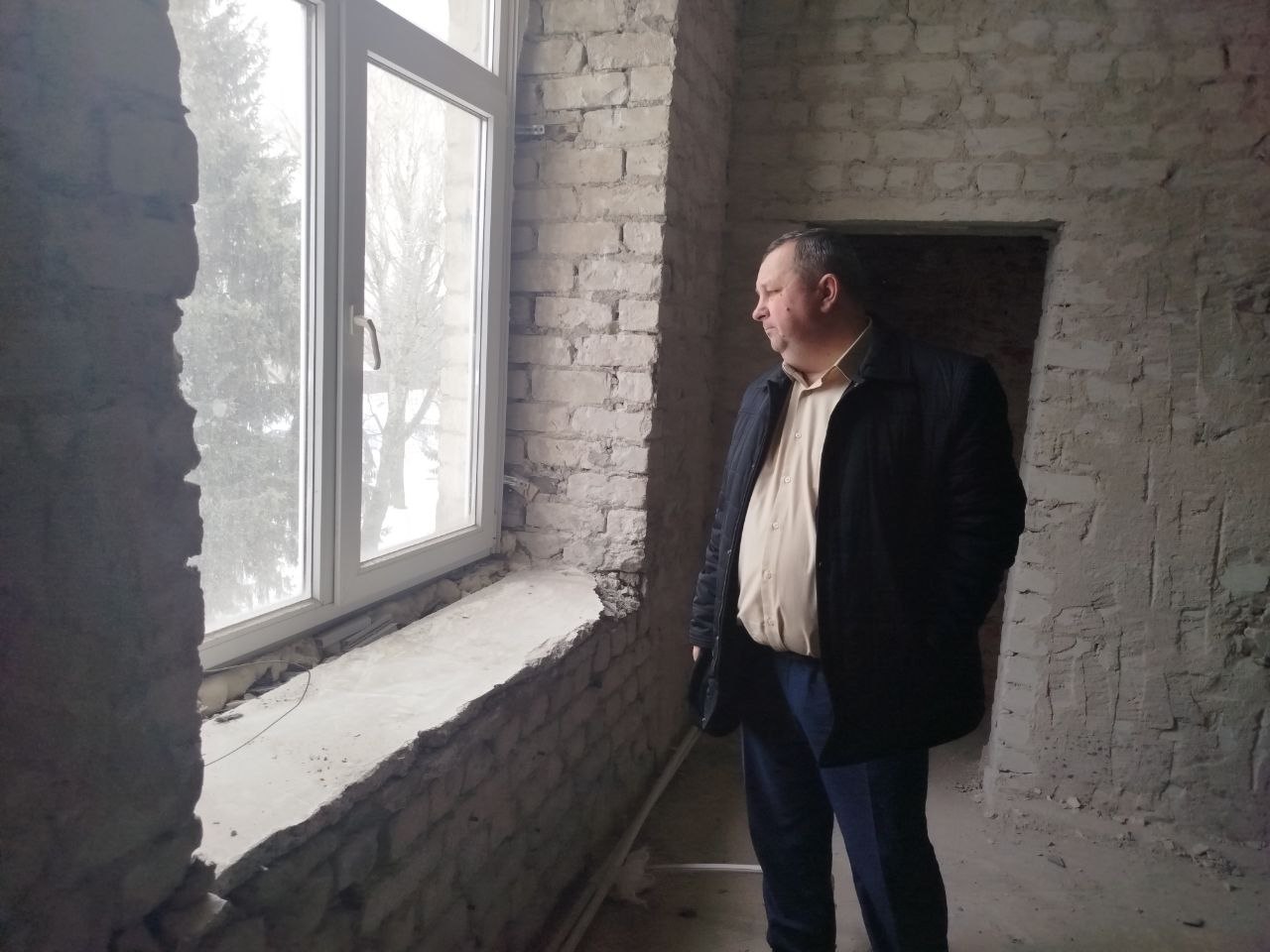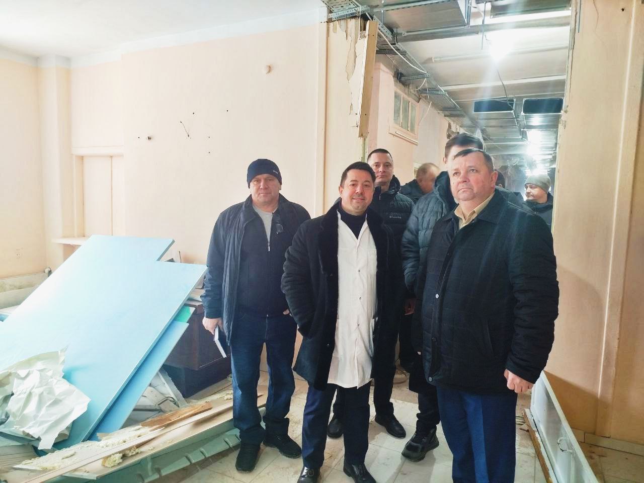 Совместно с главным врачом А.Н.Хардиковым осмотрели текущее состояние работ.