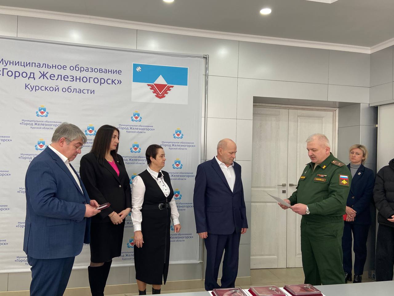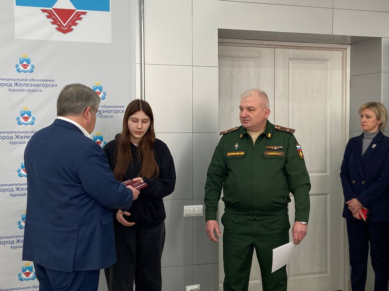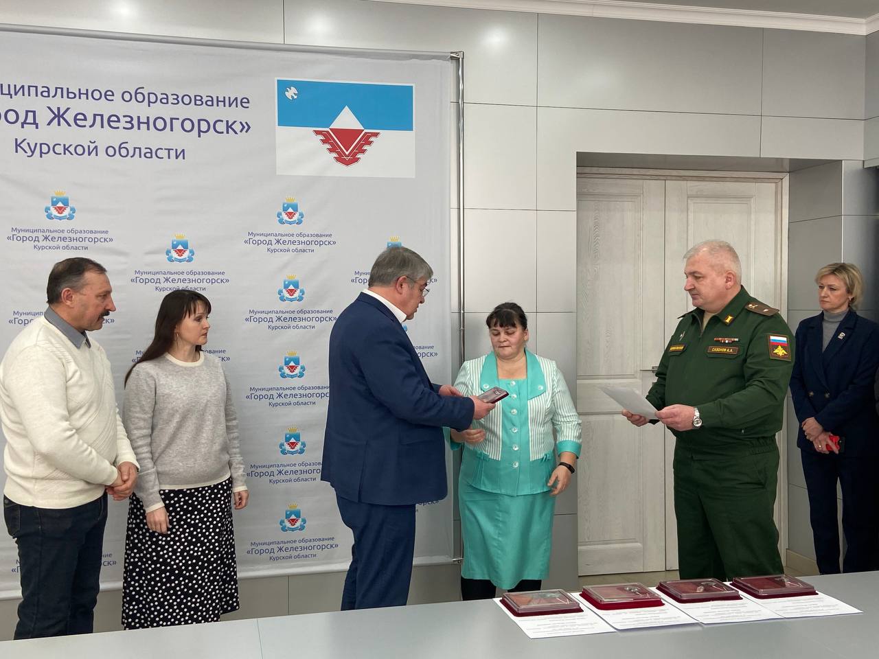 Совместно с военным комиссаром города Железногорска и Железногорского района майором Алексеем Сазоновым передали на хранение государственные награды, которыми Указами Президента Российской Федерации Владимиром Путиным посмертно награждены железногорские ребята.