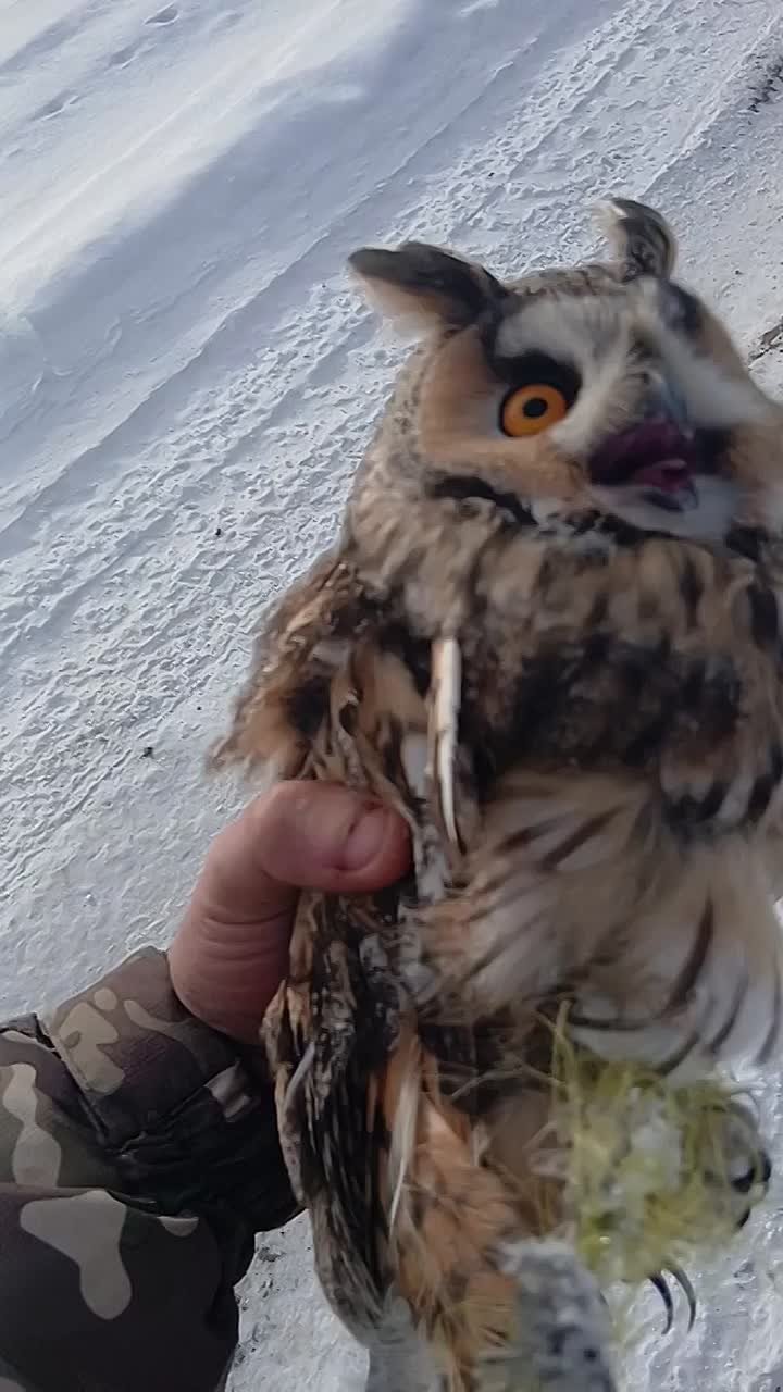 Житель курского приграничья спас сову из противодроновой сети. Видео спасения появилось в телеграм-канале «Рыльский чатик».