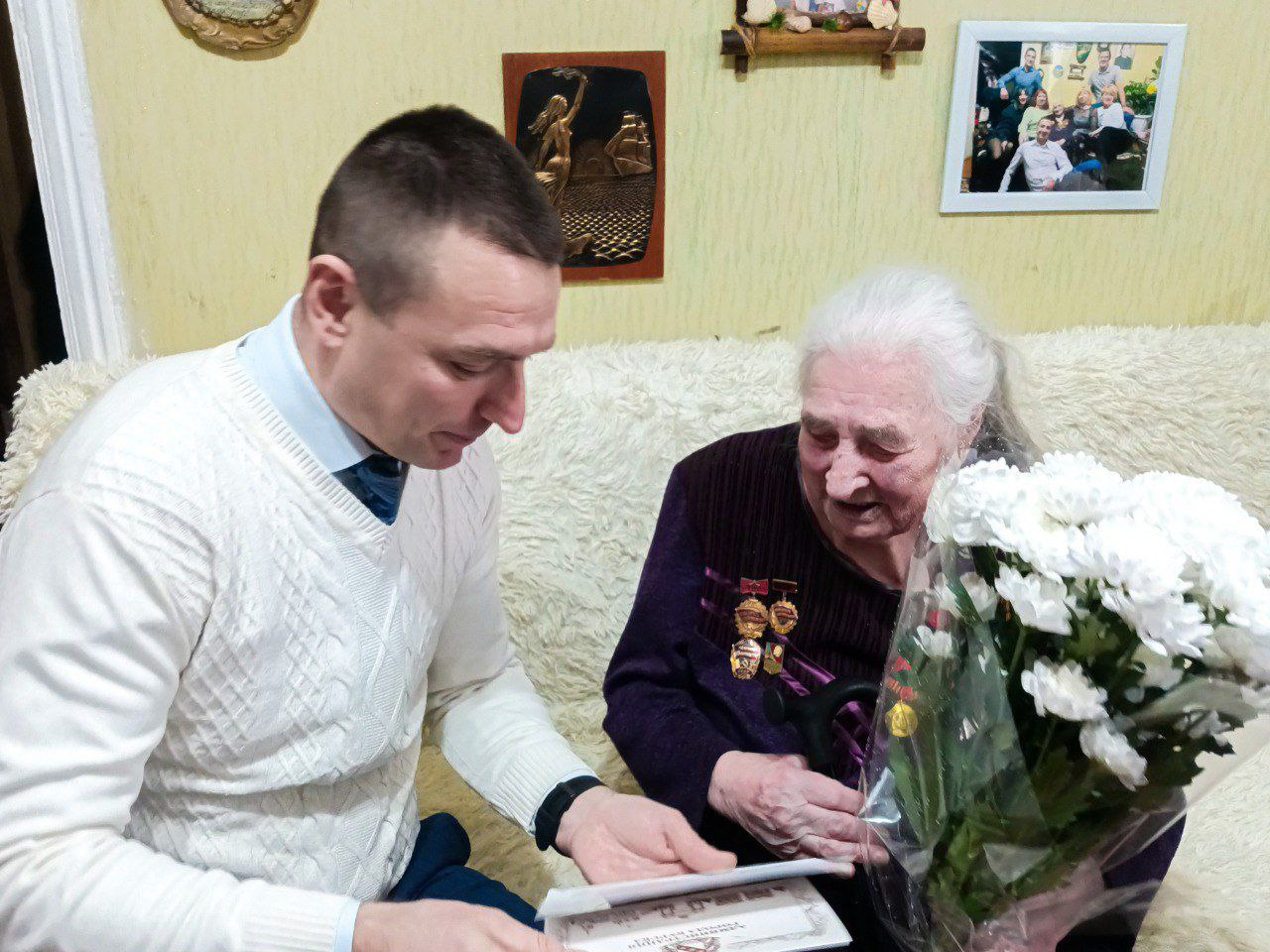 Сегодня с праздником ее поздравили и.о. заместителя главы администрации города Владимир Гребенкин и председатель комитета социальной защиты населения города Курска Сергей Брежнев.