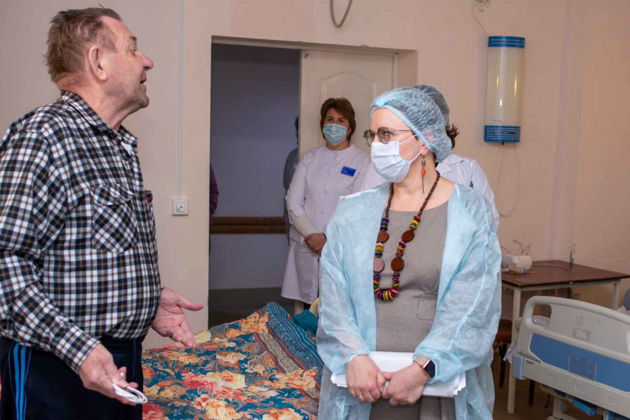 В ходе визита министр оценила условия лечения пациентов и работу медицинского персонала, а также пообщалась с сотрудниками и жителями Курска, проходящими лечение.