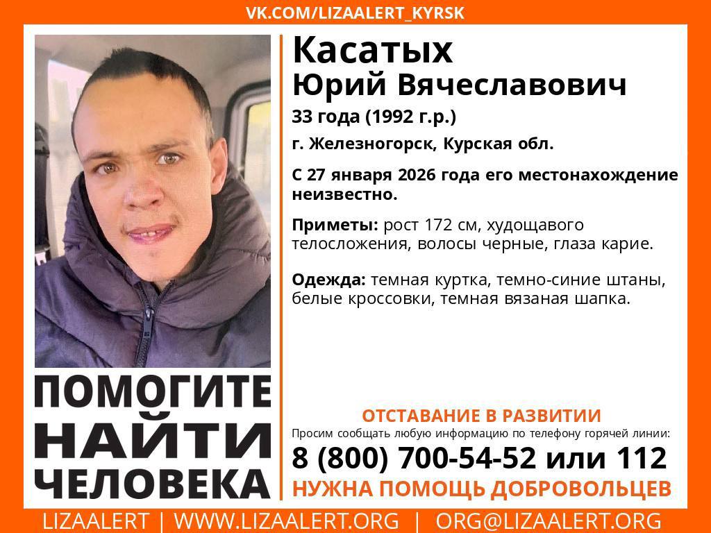 В Железногорске продолжаются поиски без вести пропавшего 27 января Касатых Юрия Вячеславовича 1992 г.р.