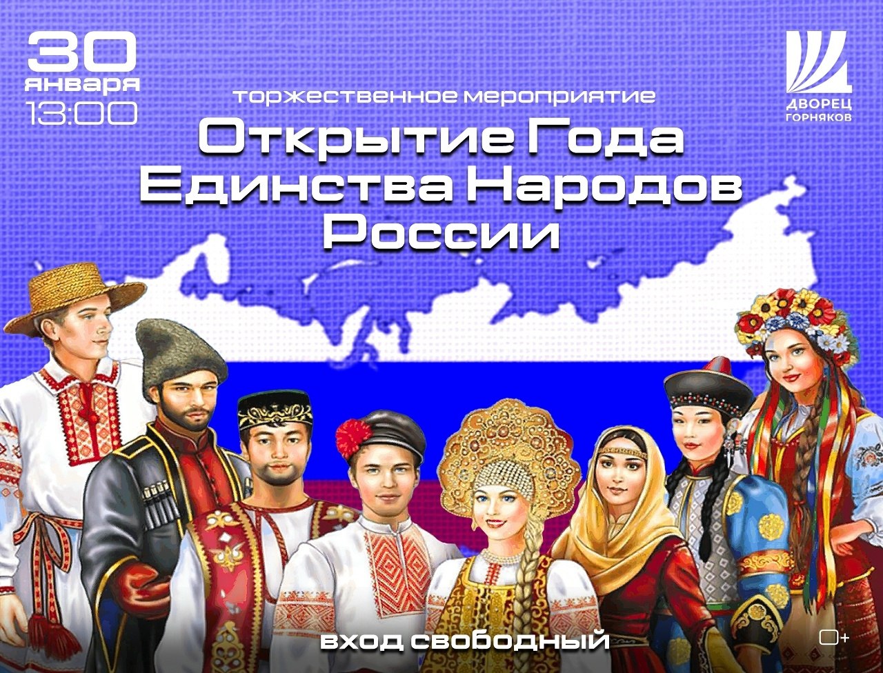30 января в 13:00 во Дворце Горняков состоится торжественное мероприятие «Открытие Года единства народов России».