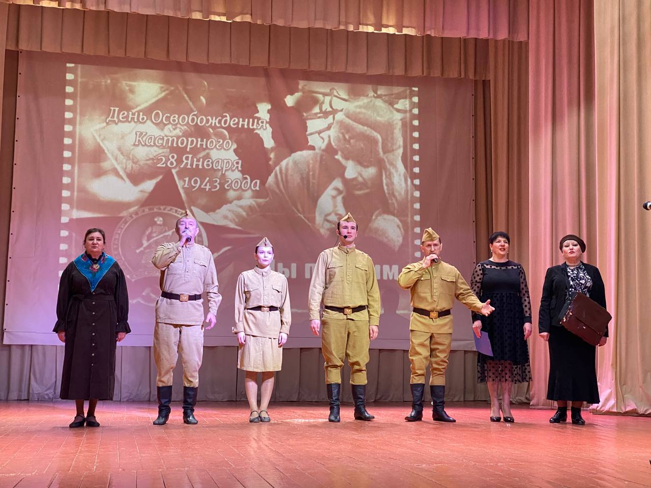 Вчера в нашем районе состоялась акция «С добрым утром, Касторное!», торжественный митинг на братском кладбище в п. Касторное, возложение венков и цветов к могилам погибшим воинов, мероприятия в Касторенском центре досуга и кино «Родина» и межпоселенческой библиотеке, состоялись мероприятия в каждой школе нашего района.