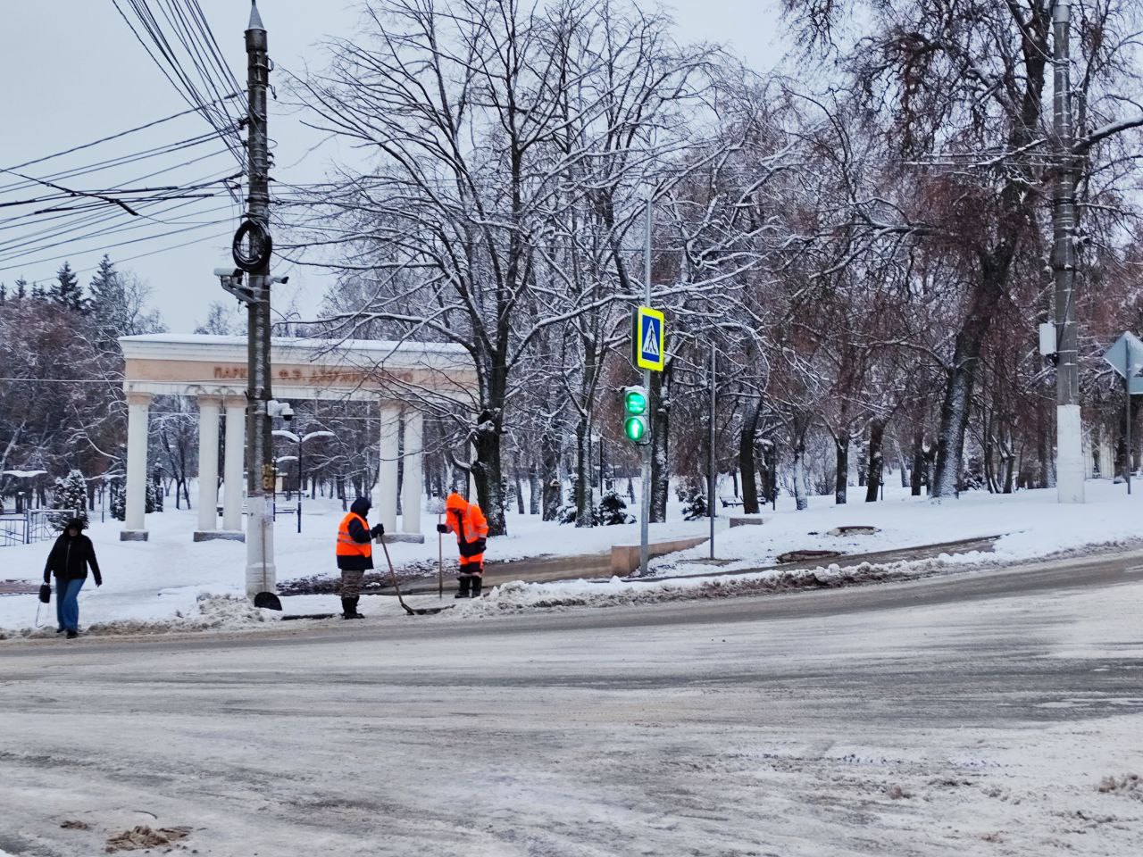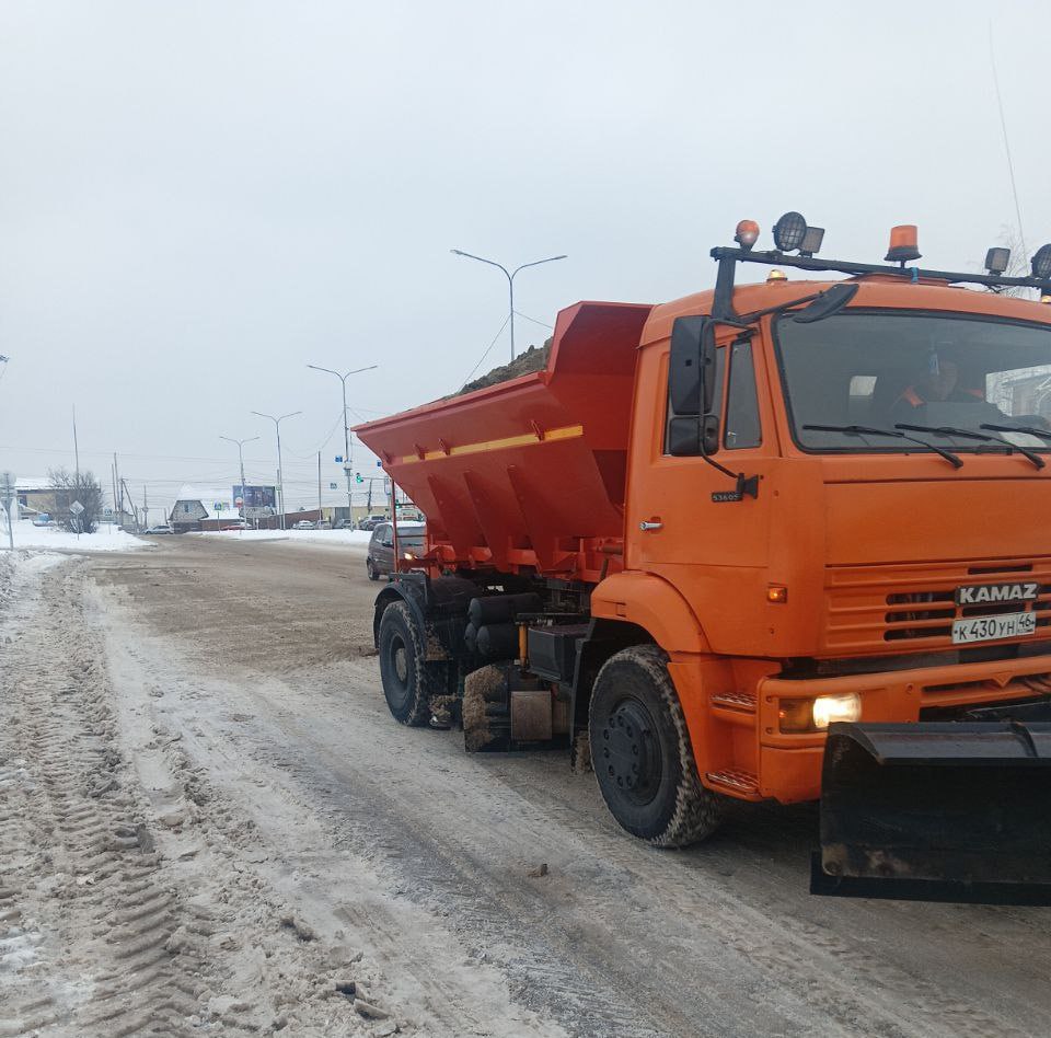 Из-за вернувшейся минусовой температуры усилена обработка дорог и тротуаров песко-соляной смесью.