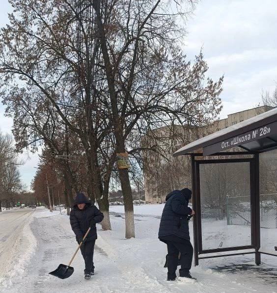 К наведению порядка присоединились и горожане. Сотрудники детской школы искусств №9 убрали снег на остановке общественного транспорта, а жители дома №184 на улице Бойцов 9-й Дивизии самостоятельно расчистили свой двор.