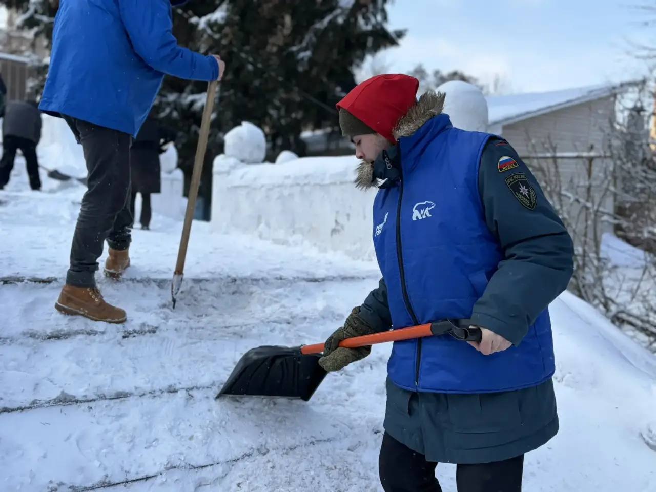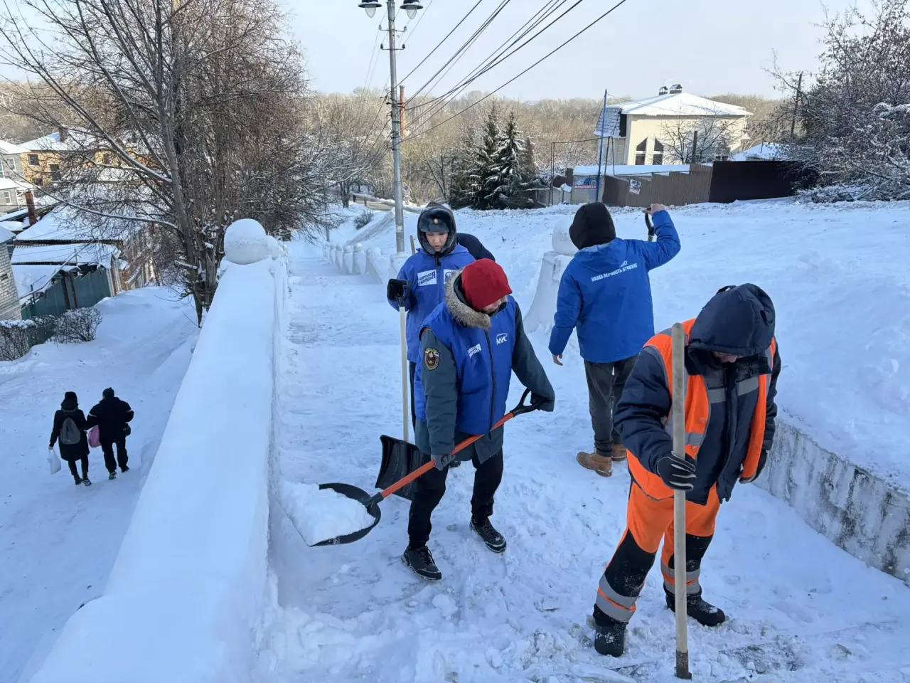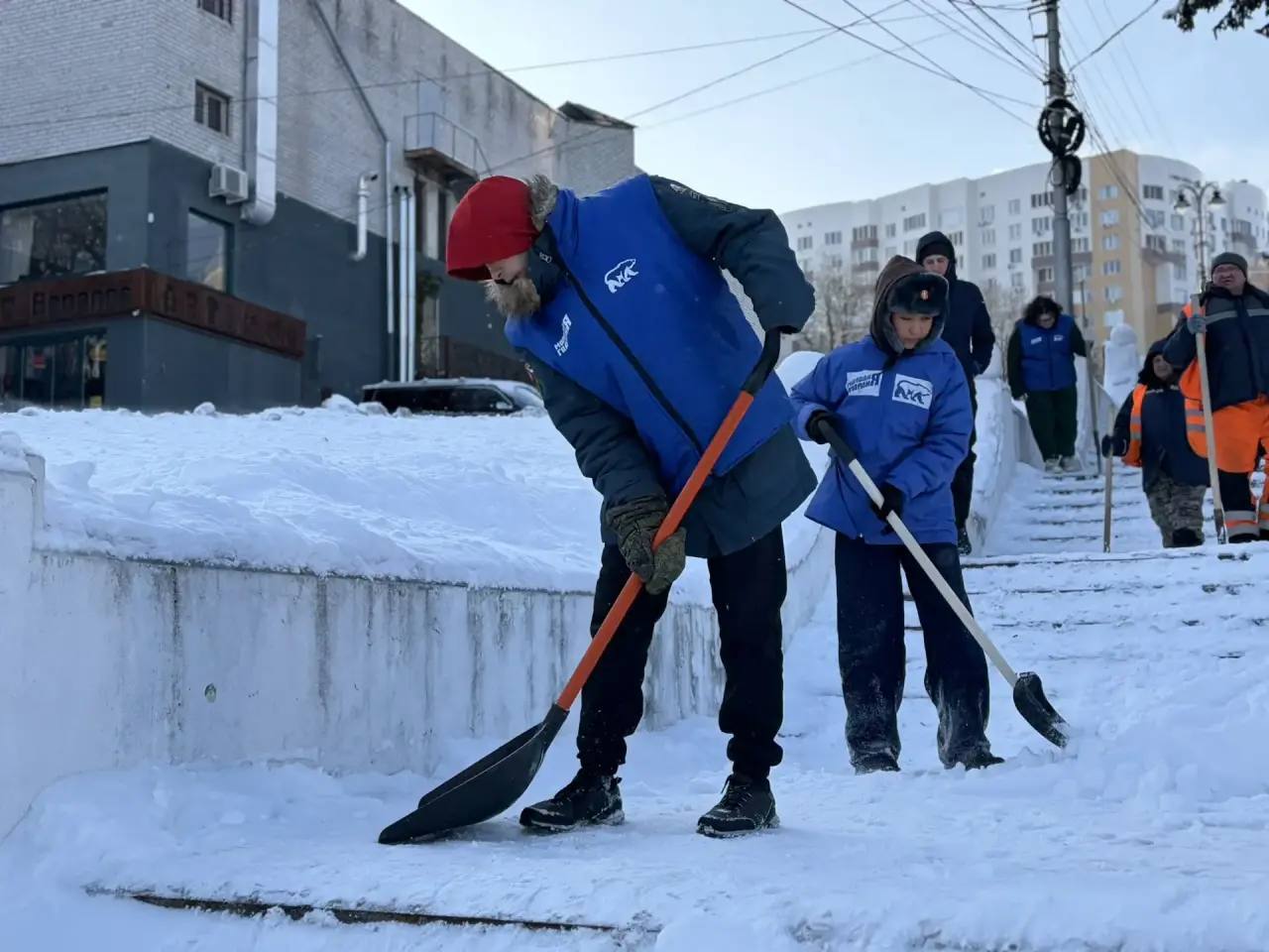 Молодогвардейцы сегодня помогали дорожникам расчистить ступеньки на улице Мирной.