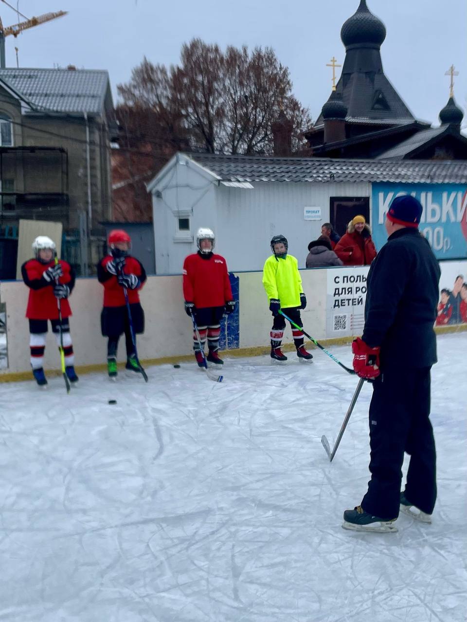 На катках можно взять напрокат коньки и воспользоваться услугами помощника-фигуриста.