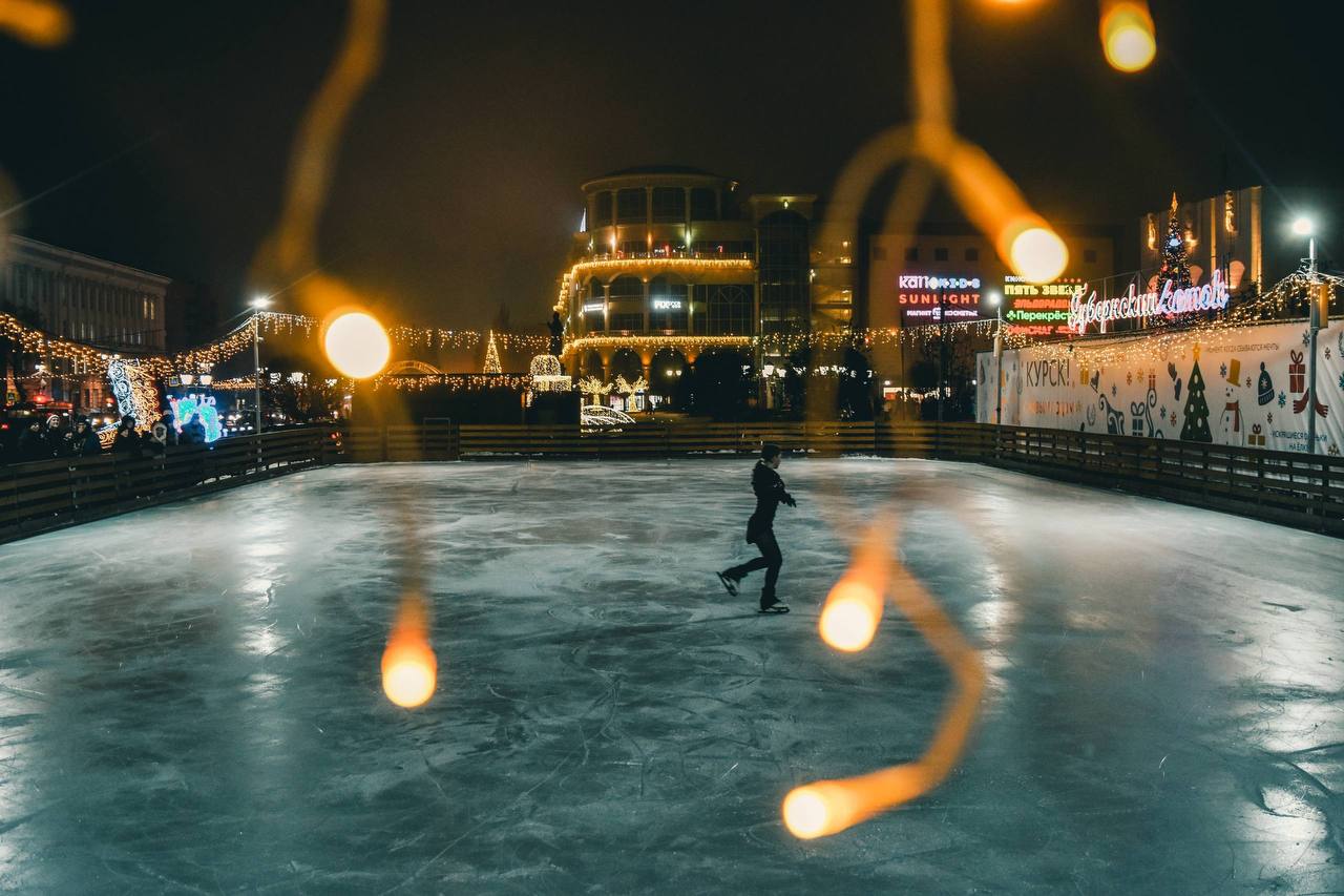 Куряне и гости города активно проводят время на Губернском катке на Театральной площади.