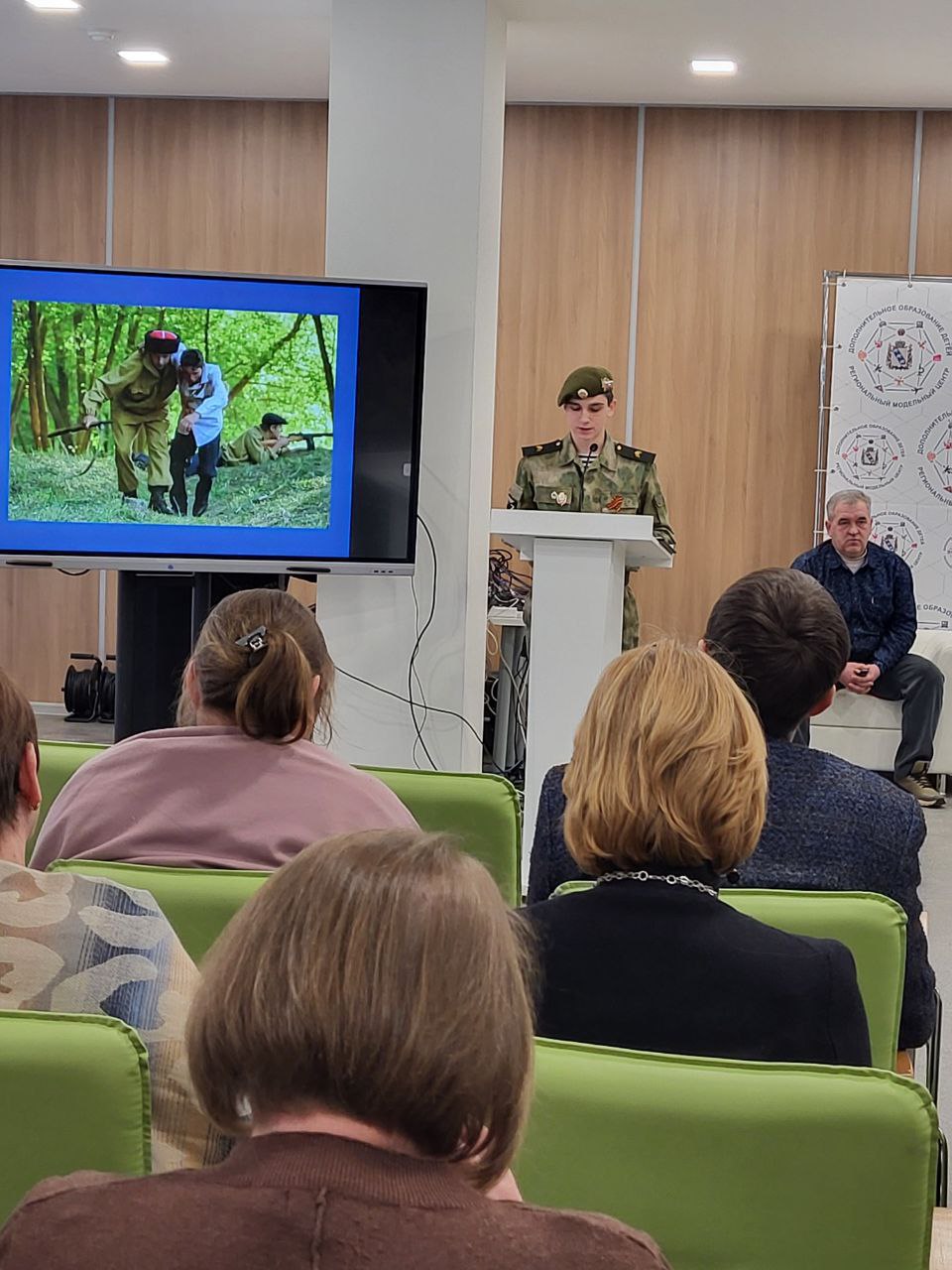 Участники образовательного события смогли познакомиться с проектами "Музей в чемоданчике" Высоконодворской школы, о нем рассказали Мария Николаевна Периханян и Артем Сеньчишин, и "Инсценировка военных событий" Паникинской школы. Михаил Иванович Любицкий вместе с Андреем Суровцевым еще и рассказали о своем проекте в рамках пленарной части семинара