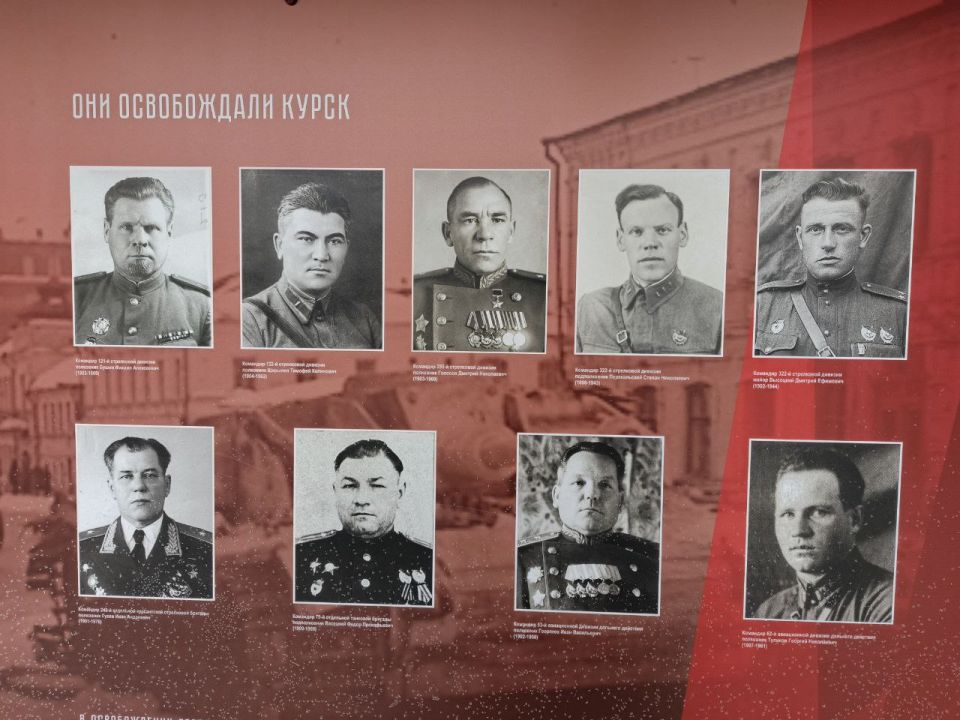 Выставка, организованная Центром историко-культурного наследия и комитетом культуры и туризма города, знакомит курян с биографиями и подвигами бойцов и командиров, освобождавших город. Каждый курянин знает их имена: командующий 60-й армией генерал-майор Иван Данилович Черняховский, комдив Степан Николаевич Перекальский, майор Дмитрий Ефимович Высоцкий, который после гибели командира возглавил 322-ю стрелковую дивизию, и другие.