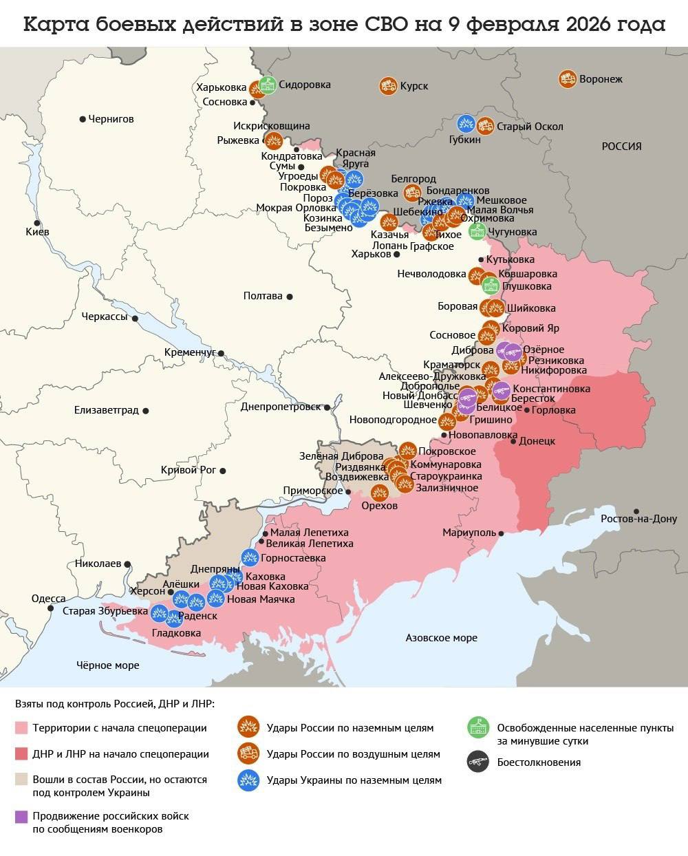 Карта боевых действий в зоне СВО на 9 февраля 2026 года