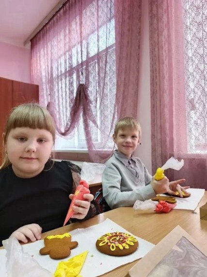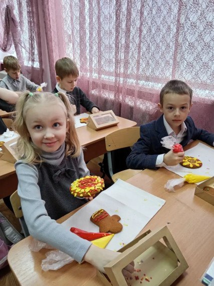 В преддверии масляной недели у обучающихся 1А класса лицея №3 прошло увлекательное мероприятие «Создаём красоту». Мастер-класс по украшению медовых пряников показала ребятам Рагулина Ольга – мастер пряничной мастерской города Курск. Первоклассники узнали , что до начала XX века именно пряник был главным подарочным атрибутом праздничной недели, символом достатка, любви и уважения к предкам. Вместе с классным руководителем Т.А. Шкуратовой ребята украсили пряничное солнце и куклу-Масленицу. Это было интересно и увлекательно.