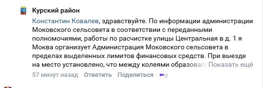 В администрации Курского района оперативно дали развёрнутый ответ. Выяснилось — дорогу чистить должны, но есть нюансы.