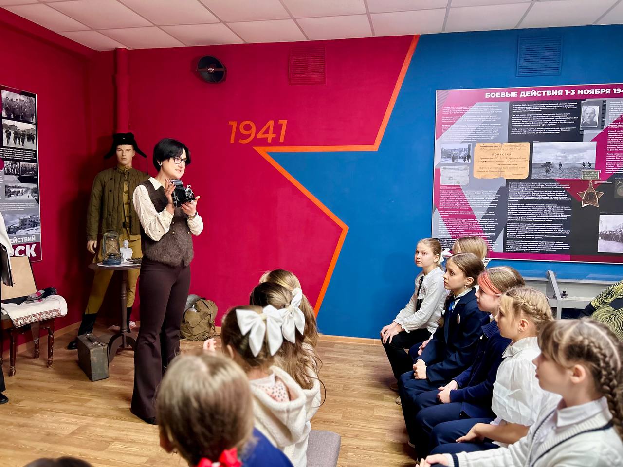 Одной из самых атмосферных стала станция «Музей боевого пути Народного ополчения Курска 1941–1945». Школьников познакомили с историей Великой Отечественной войны и показали настоящие артефакты: фронтовую «лейку» — камеру, которая фиксировала события тех лет, солдатские фляги, каски, элементы обмундирования. Здесь же прошла тематическая викторина.