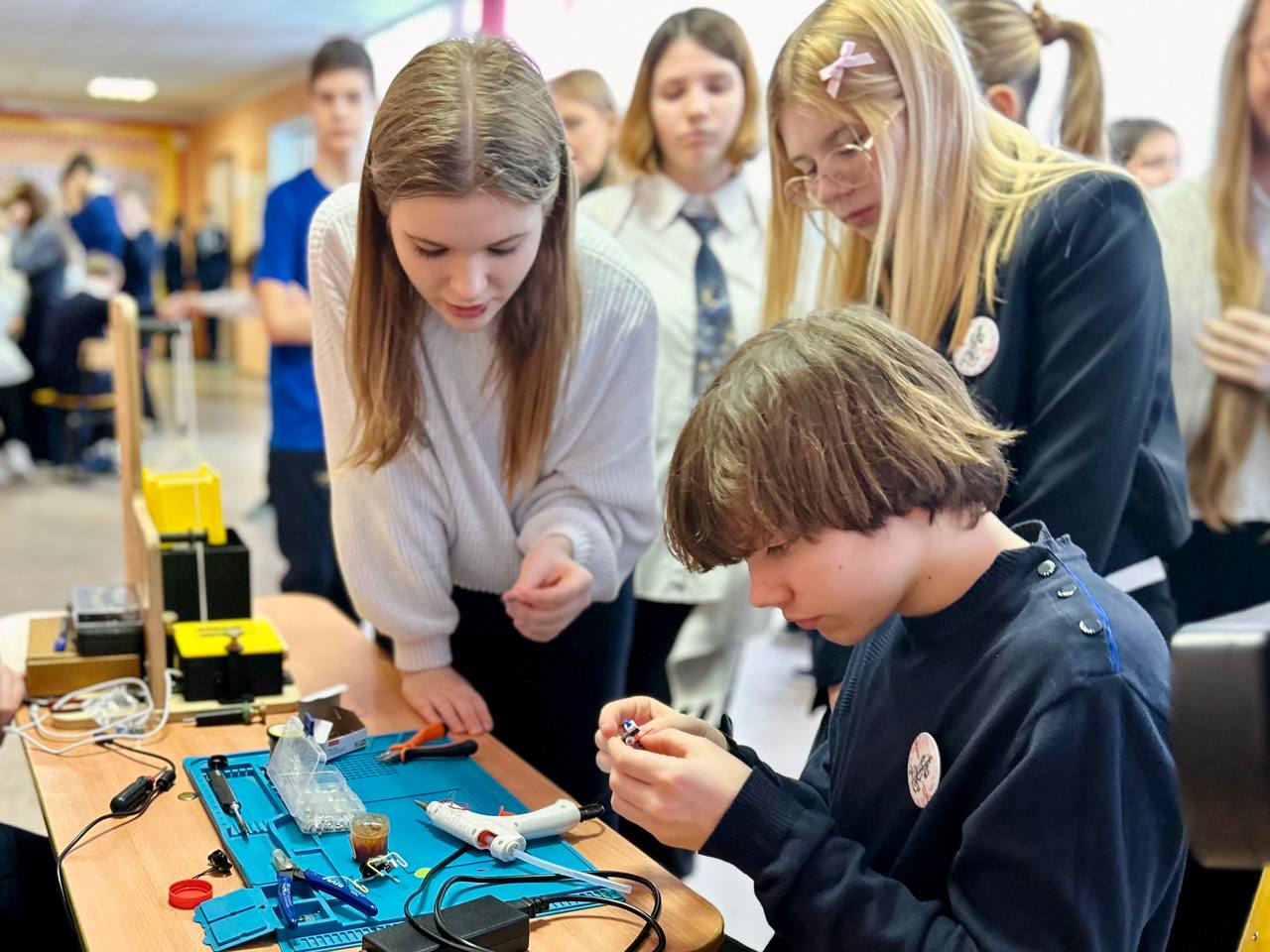 Отдельный блок площадок посвятили современным технологиям. Учащиеся познакомились с виртуальной и дополненной реальностью: очки VR и AR-технологии открыли перед ними цифровые миры. В соседней «лаборатории» кипела работа — ребята мастерили роботов своими руками: собирали схемы, программировали простейшие алгоритмы и тут же проверяли, как их творения приходят в движение. Кульминацией знакомства с искусственным интеллектом стал эксперимент, где учитель продемонстрировал, как современные технологии позволяют извлекать музыку из обычного банана.