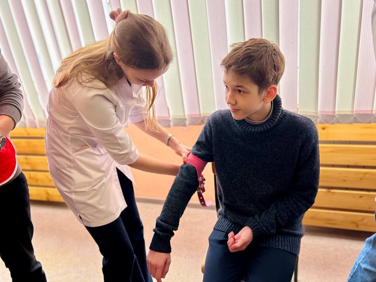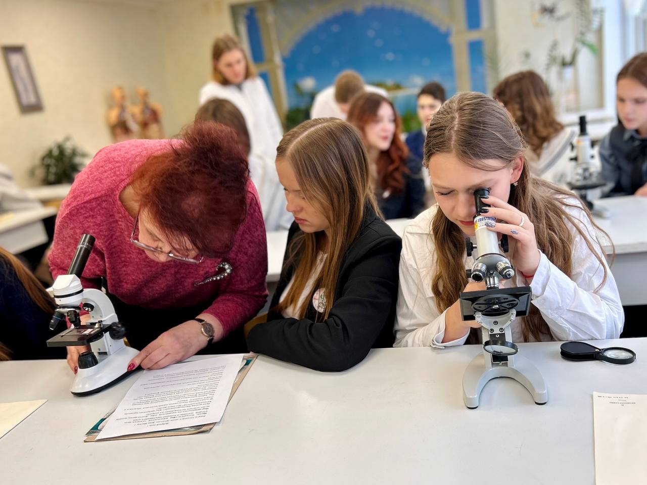 В кабинете биологии расположилась станция «Живая наука: трогай, смотри, узнавай!» Ученики медицинских классов подготовили для ребят презентацию об оптических приборах, а затем юные куряне сами провели настоящие микроскопические исследования. Рядом, на площадке медицинского профиля, школьники попробовали себя в роли врачей: учились накладывать повязки, работать с медицинскими инструментами и оказывать первую помощь под руководством преподавателей КГМУ.