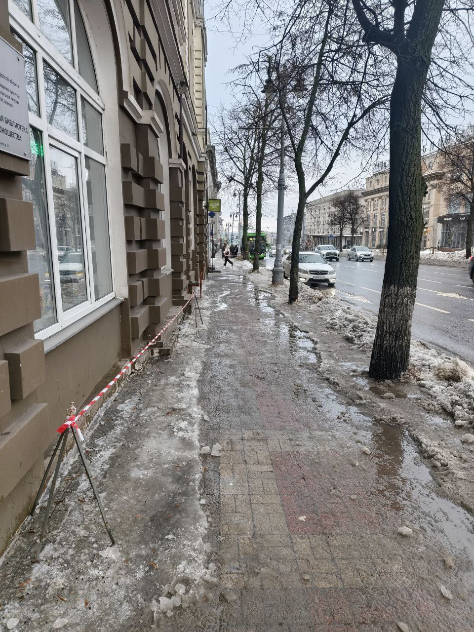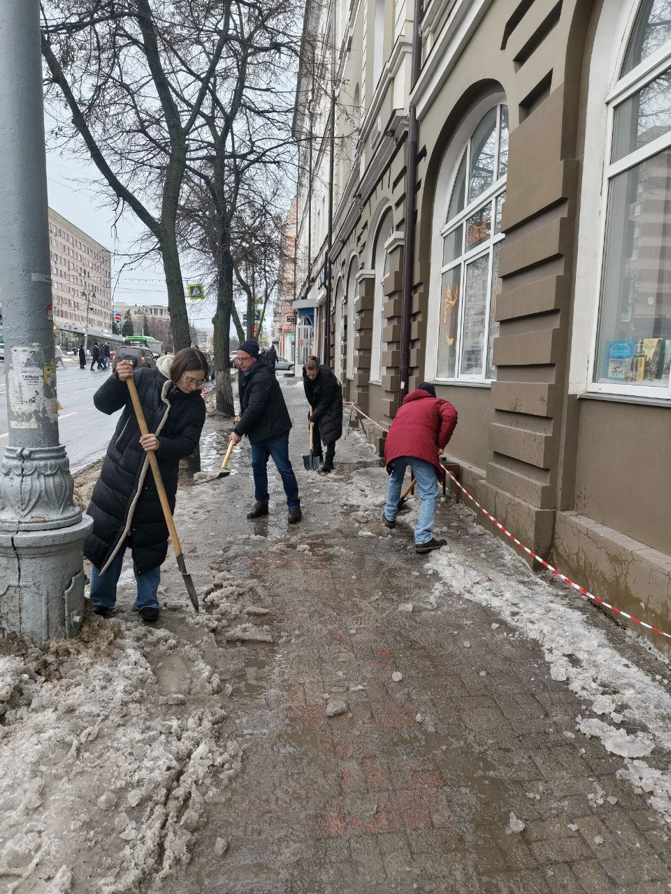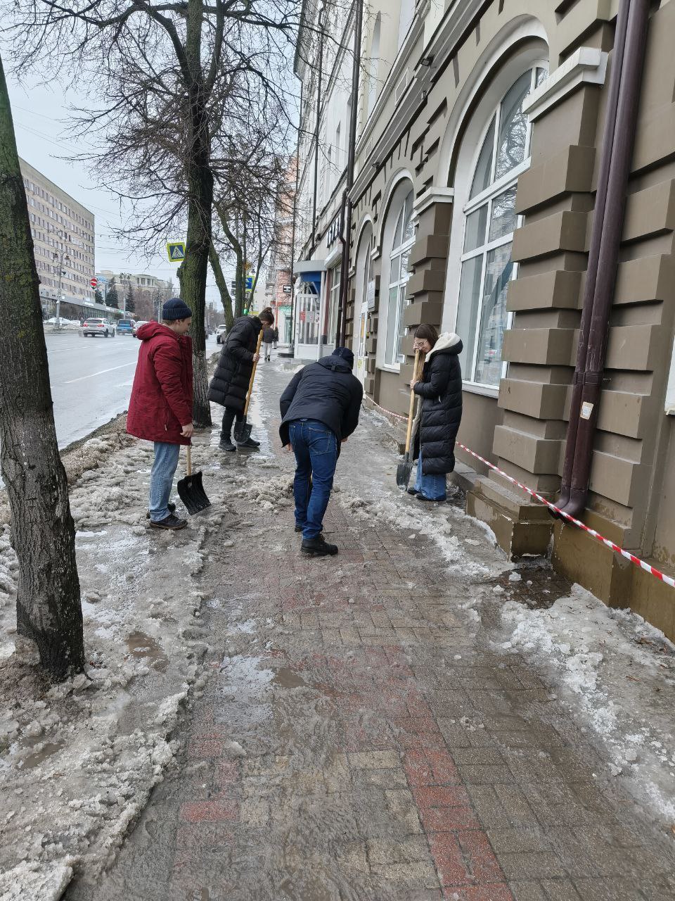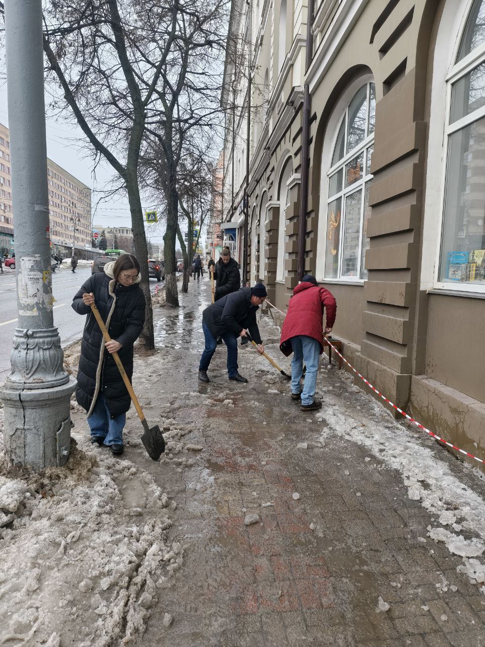 Сотрудники Центра поддержки молодежных инициатив Курска и «ДоброЦентр Курска» очистили тротуар по Ленина,15.