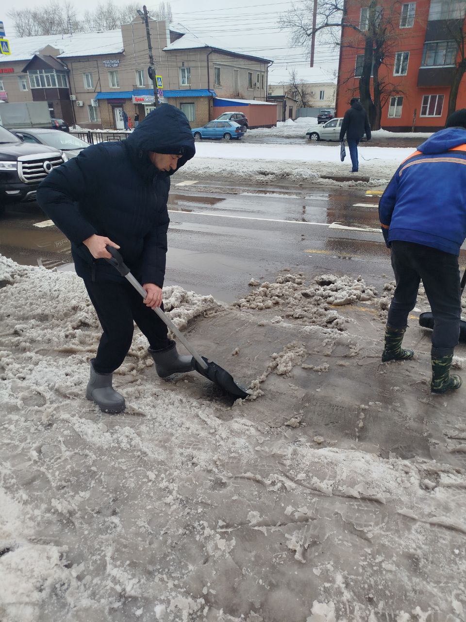 Сотрудники Спортивной школы "Картинга" помогли в расчистке пешеходных переходов и остановок по улице Литовская.