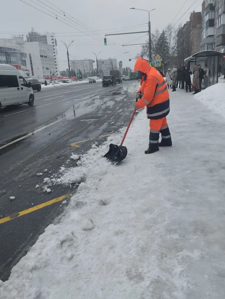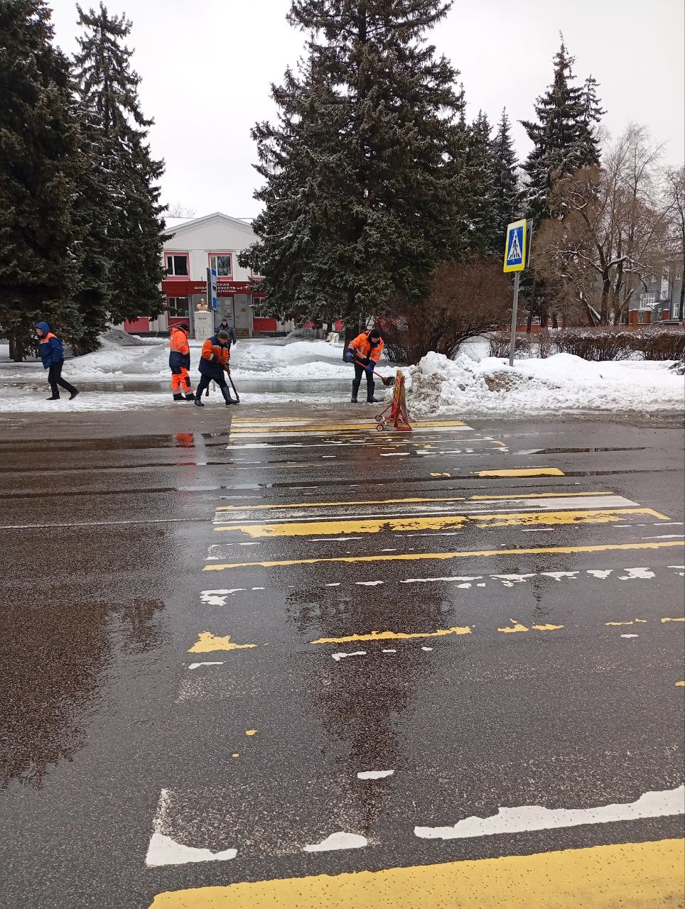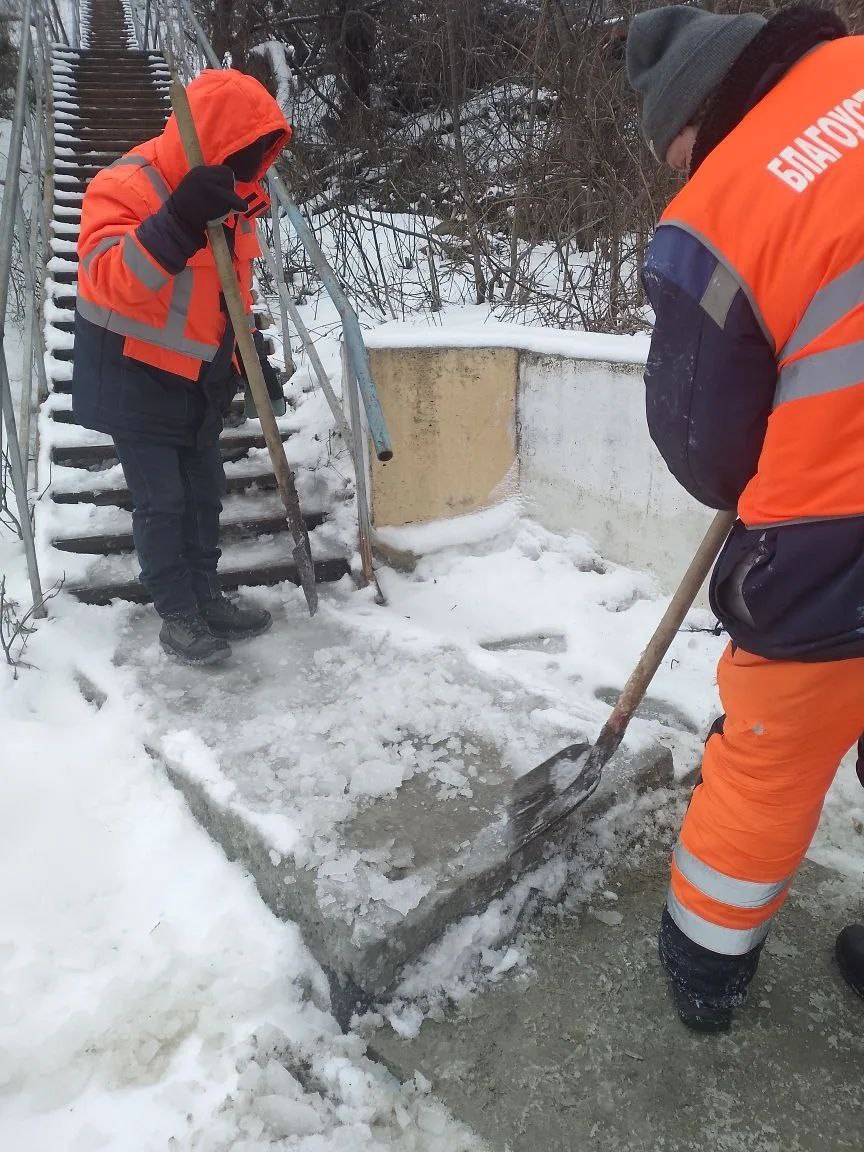 Рабочие приводят в порядок тротуары, посадочные площадки, пешеходные переходы, остановки общественного транспорта, лестничные спуски. Помимо очистки от снега, эти участки обрабатывают песко-соляной смесью.
