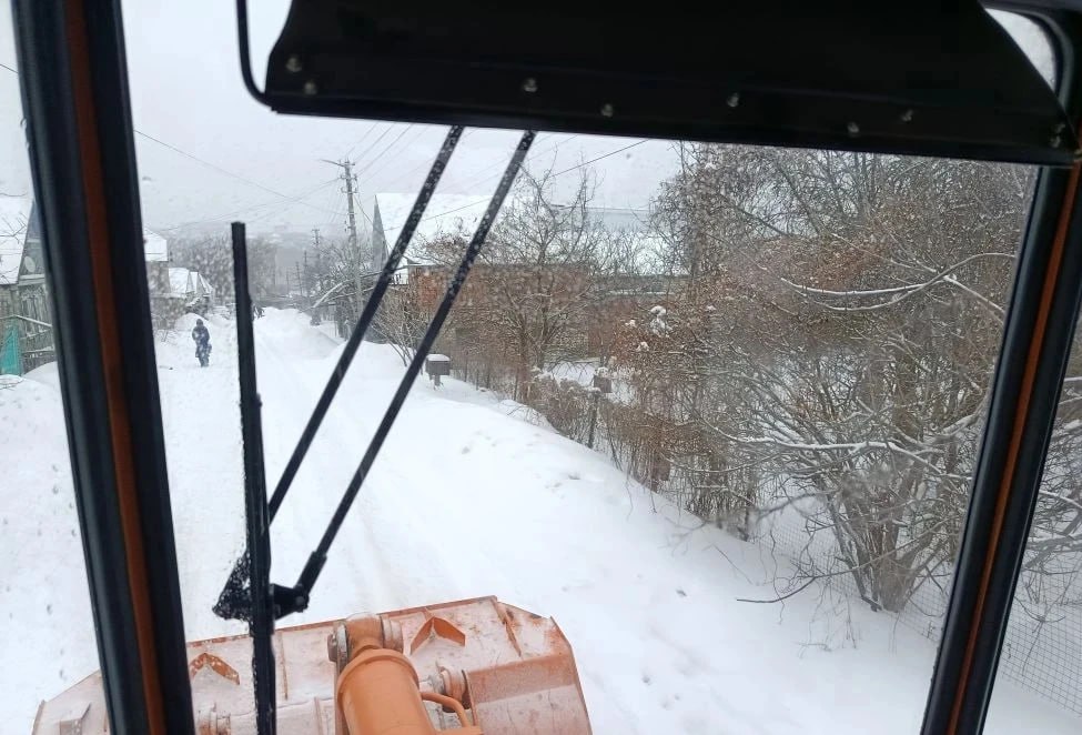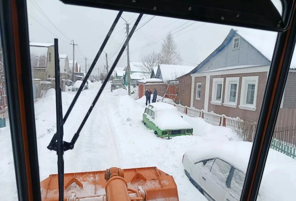 В Центральном округе работает спецтехника СМЭП. Она расчищает частный сектор после сильного снегопада.