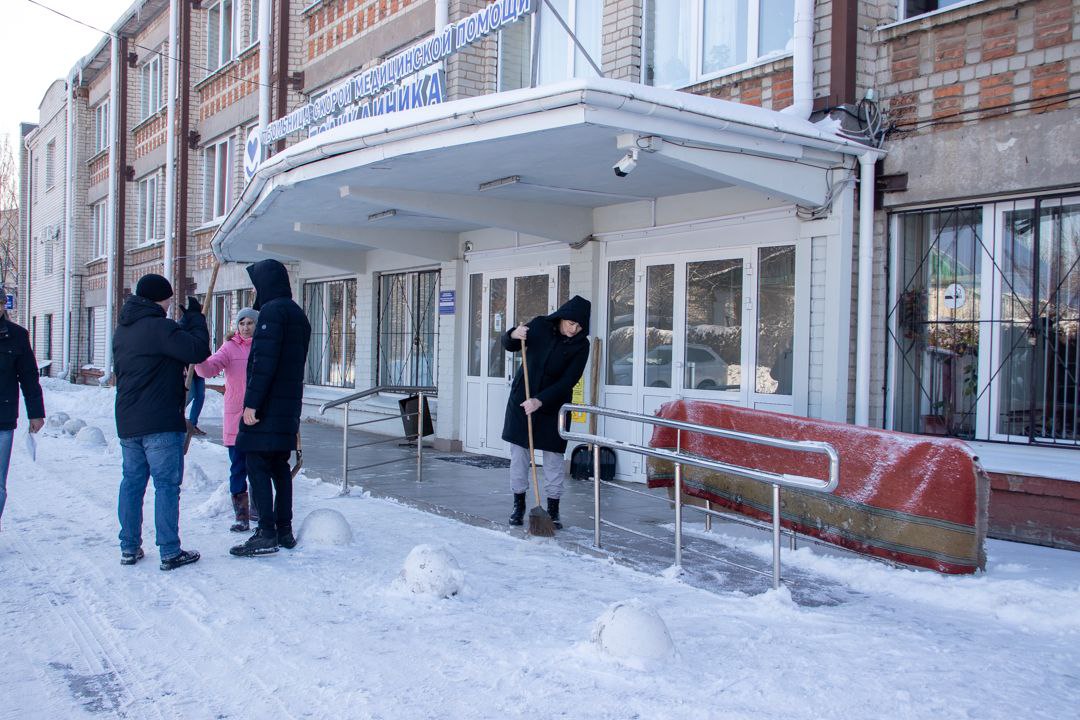В Курской области стартовали субботники. Сегодня сотрудники всех подразделений Больницы скорой медицинской помощи, свободные от дежурства, вышли на расчистку территории учреждения от снега. К врачам, медицинским сёстрам и санитарочкам присоединились и студенты КГМУ.