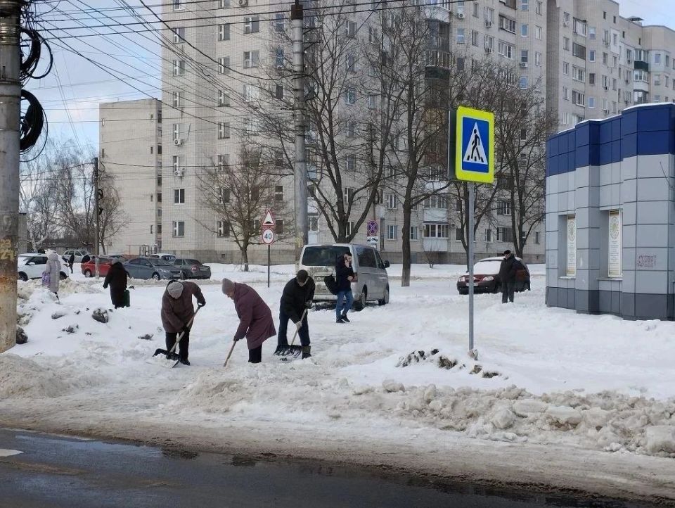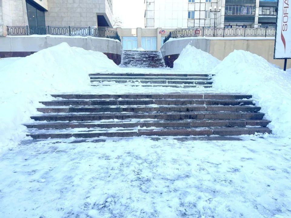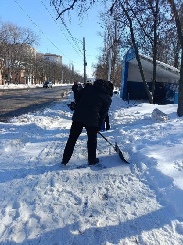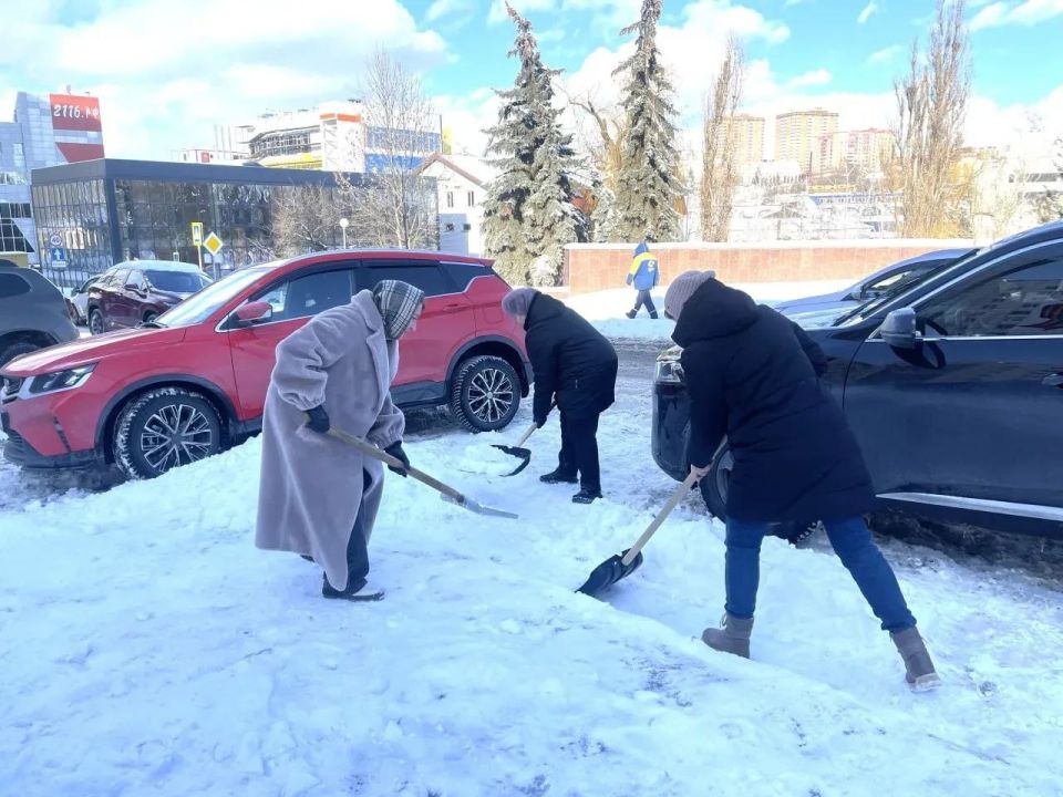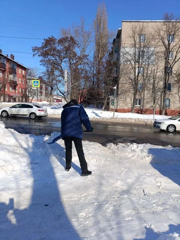 Они чистили остановки общественного транспорта, участки у пешеходных переходов, тротуары и лестницы.
