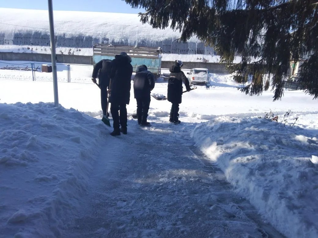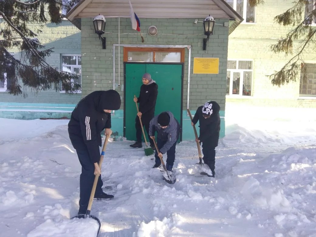 Несмотря на морозный день, атмосфера была по-настоящему теплой и дружелюбной. Учителя и школьники работали плечом к плечу, дружно расчищая дорожки и подходы к зданию. Смех и шутки разносились по всей территории, создавая ощущение настоящего праздника труда.