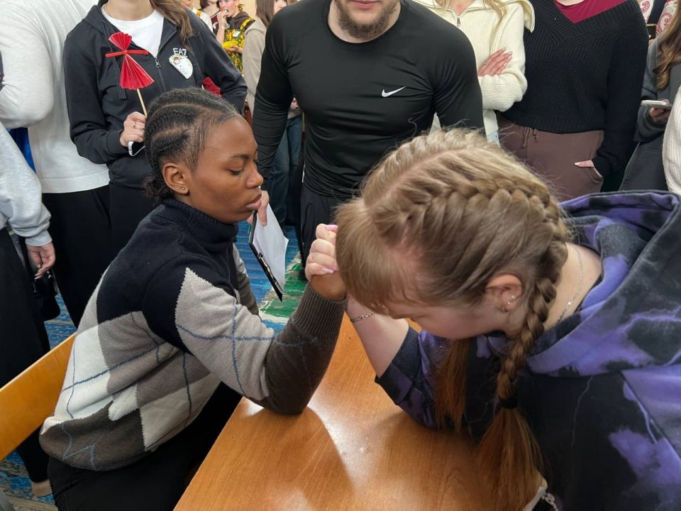 Участники с радостью включились в народные игры: перетягивание каната, бой подушками, метание снежков в цель. Юноши и девушки демонстрировали силу и выносливость, толкая гири от плеча различных весовых категорий. Активная программа сделала праздник зрелищным и динамичным.