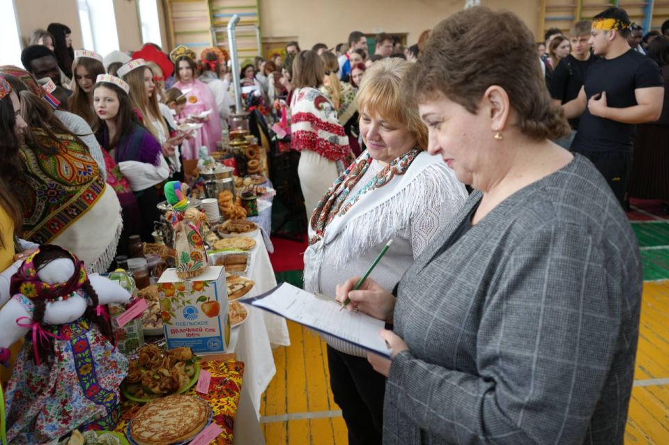 Студенты совместно с классными руководителями организовали праздничные столы с разнообразными блинными угощениями, а также подготовили авторские сувенирные куклы малых форм. Угощая гостей блинами, ребята создавали атмосферу тепла и гостеприимства, а творческие номера — песни, частушки и танцы — придали празднику особую эмоциональную окраску.